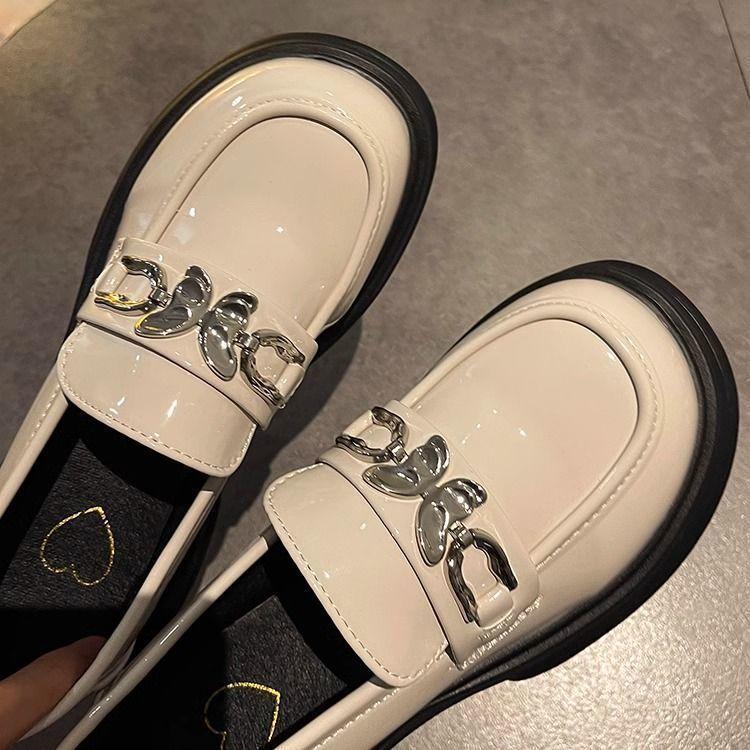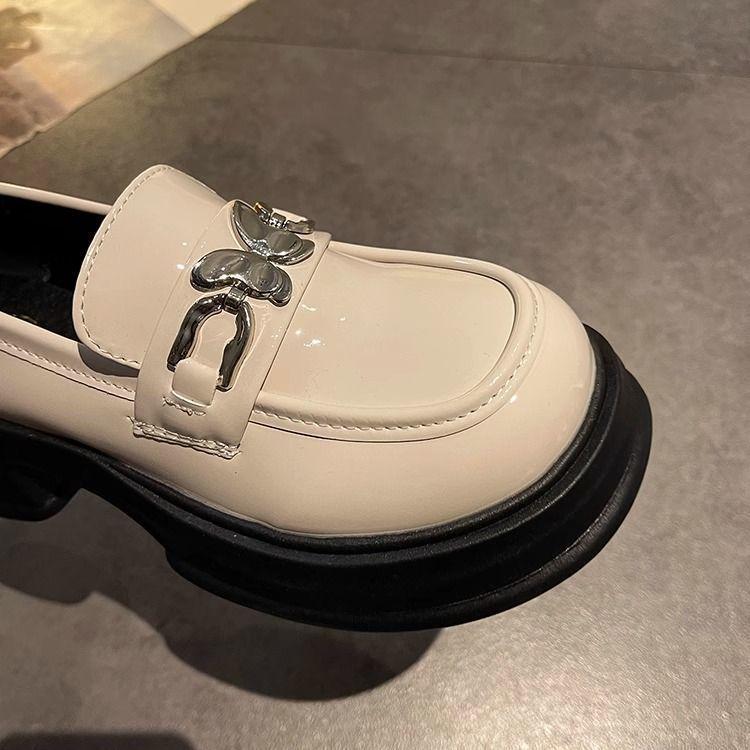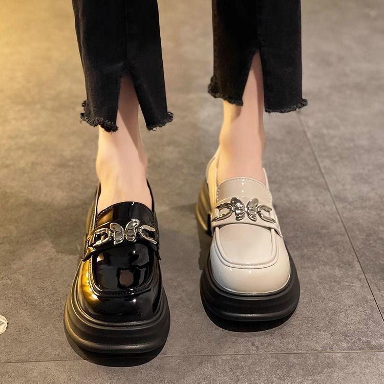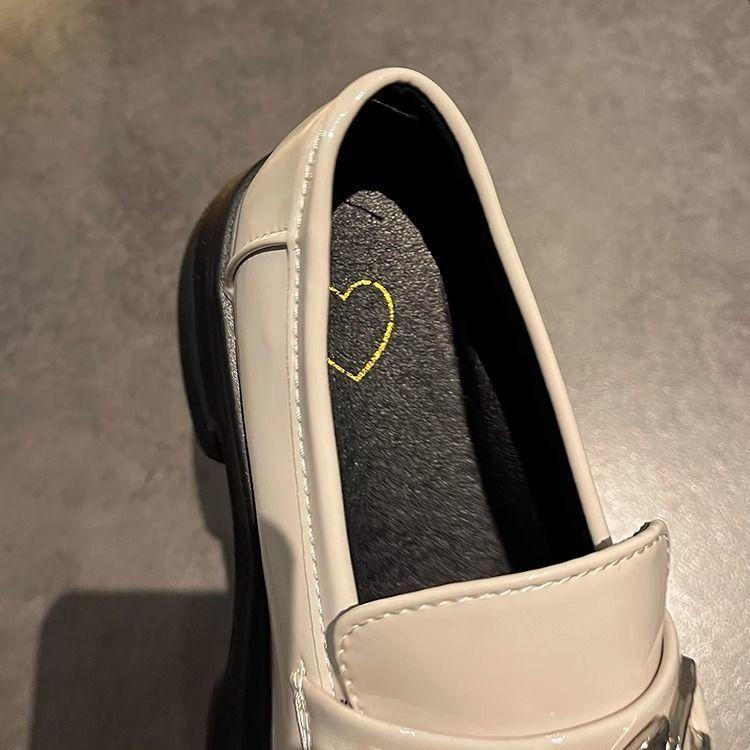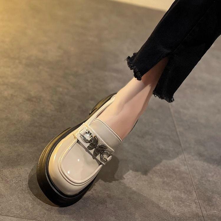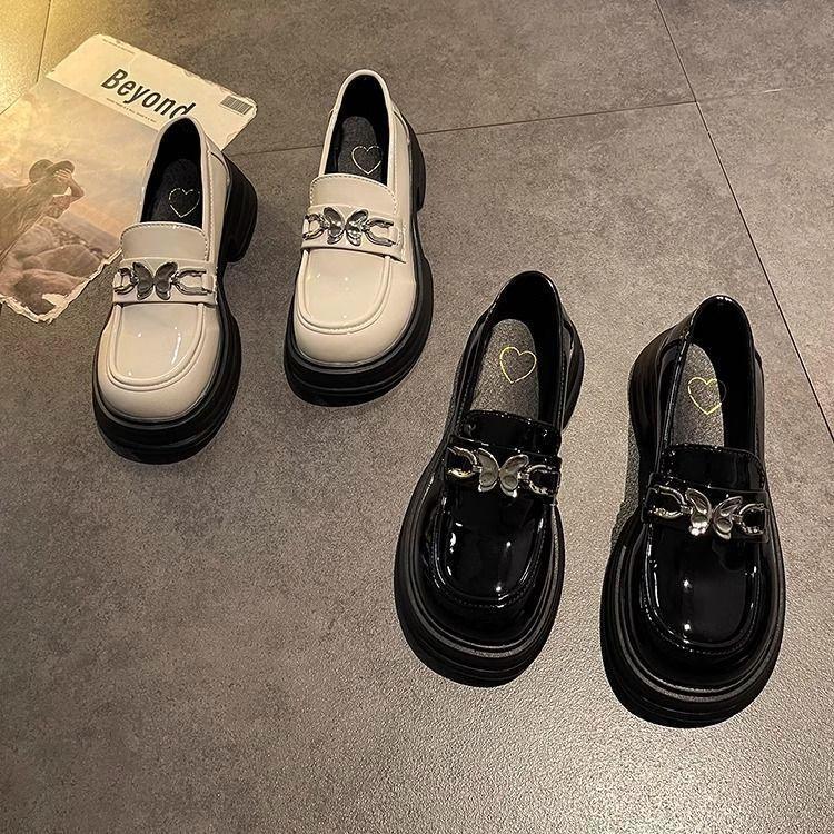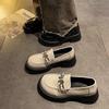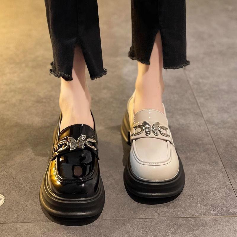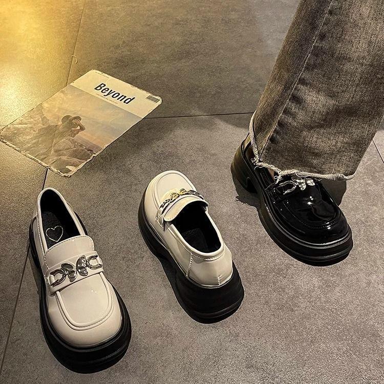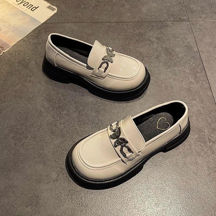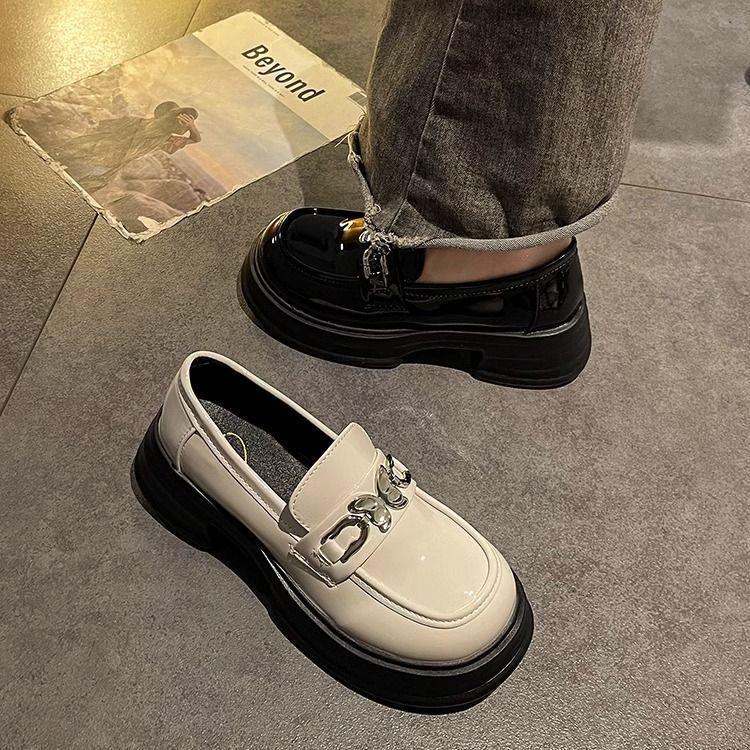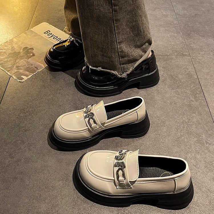 Sapatos de Couro Pequenos Estilo Britânico para Mulheres Verão 2025 Novos Mocassins Versáteis de Plataforma com Sola Grossa Sapatos Slip-On com Saias
