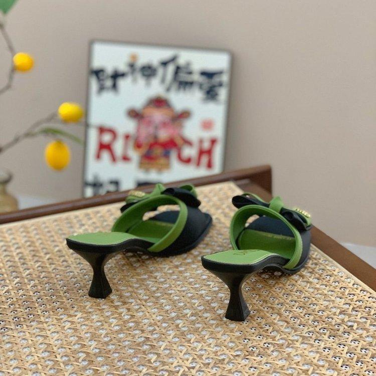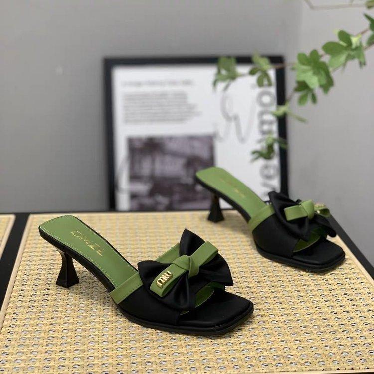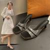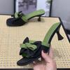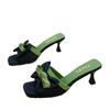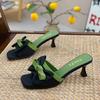 2024 Verão Novo Estilo Coreano Estilo Bonito Laço Sandálias De Salto Fino Moda Biqueira Quadrada Sapatos Femininos Desgaste Exterior Chinelos De Salto Alto