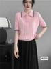 Novo Polo de Malha de Manga Curta com Emenda Universitária, Gola Polo, Fino, Casual, Top de Verão com Bloco de Cores, Slim, Versátil