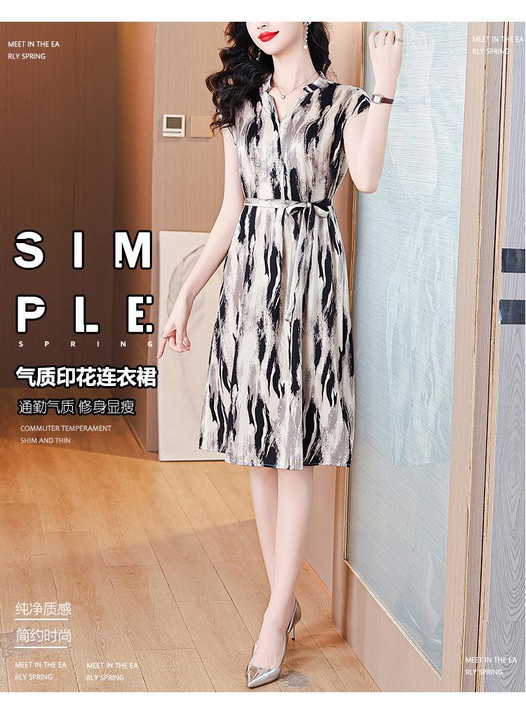Verão Novo Vestido Gola Petite Temperamento de Mãe Redutor de Idade Saia Midi