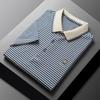 Camisa Polo de Tricô Masculina AIOPESON Respirável Listrada Casual Decote V Gola Virada para Baixo Camisa Polo Masculina de Alta Qualidade