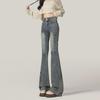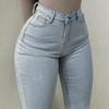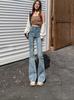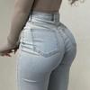Bolso Cintura Alta Moda de Rua Stretch Jeans Flare Ajuste Slim Feminino