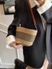 Bolsa Pequena de Palha Tecida Popular de Verão para Mulheres 2025 Nova Bolsa Tecida para Férias à Beira-Mar Bolsa Balde Transversal Casual Versátil