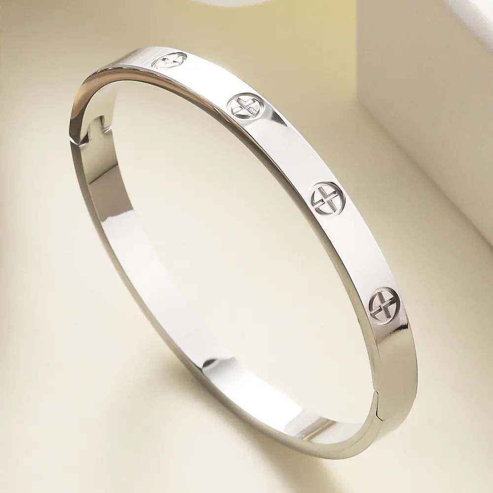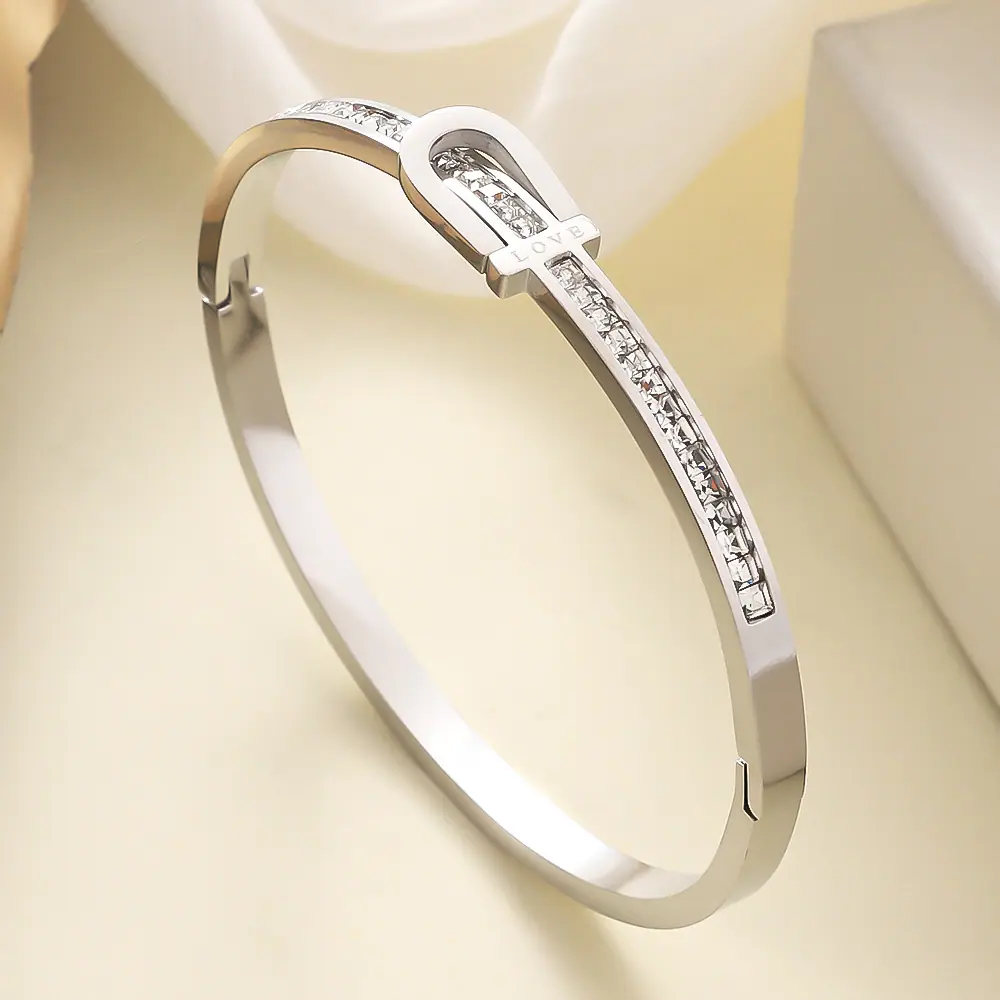 Pulseira Transfronteiriça de Aço Inoxidável Moda Simples Luxo Leve Banhada a Ouro 18K Pulseira Dez Diamantes Ginny Feminina Pulseira de Aço Titânio