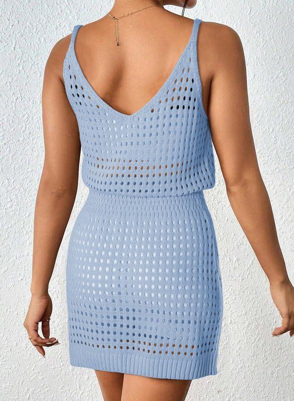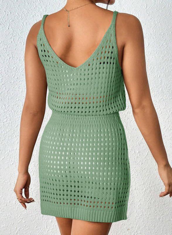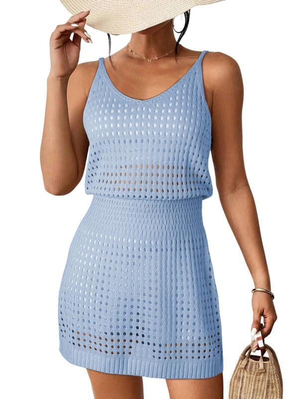 2024 Amazon Verão Crochê Vazado Tricotado Maiô de Praia Macacão de Natação Roupa de Cruzeiro Vestido de Férias Feminino
