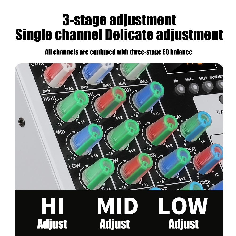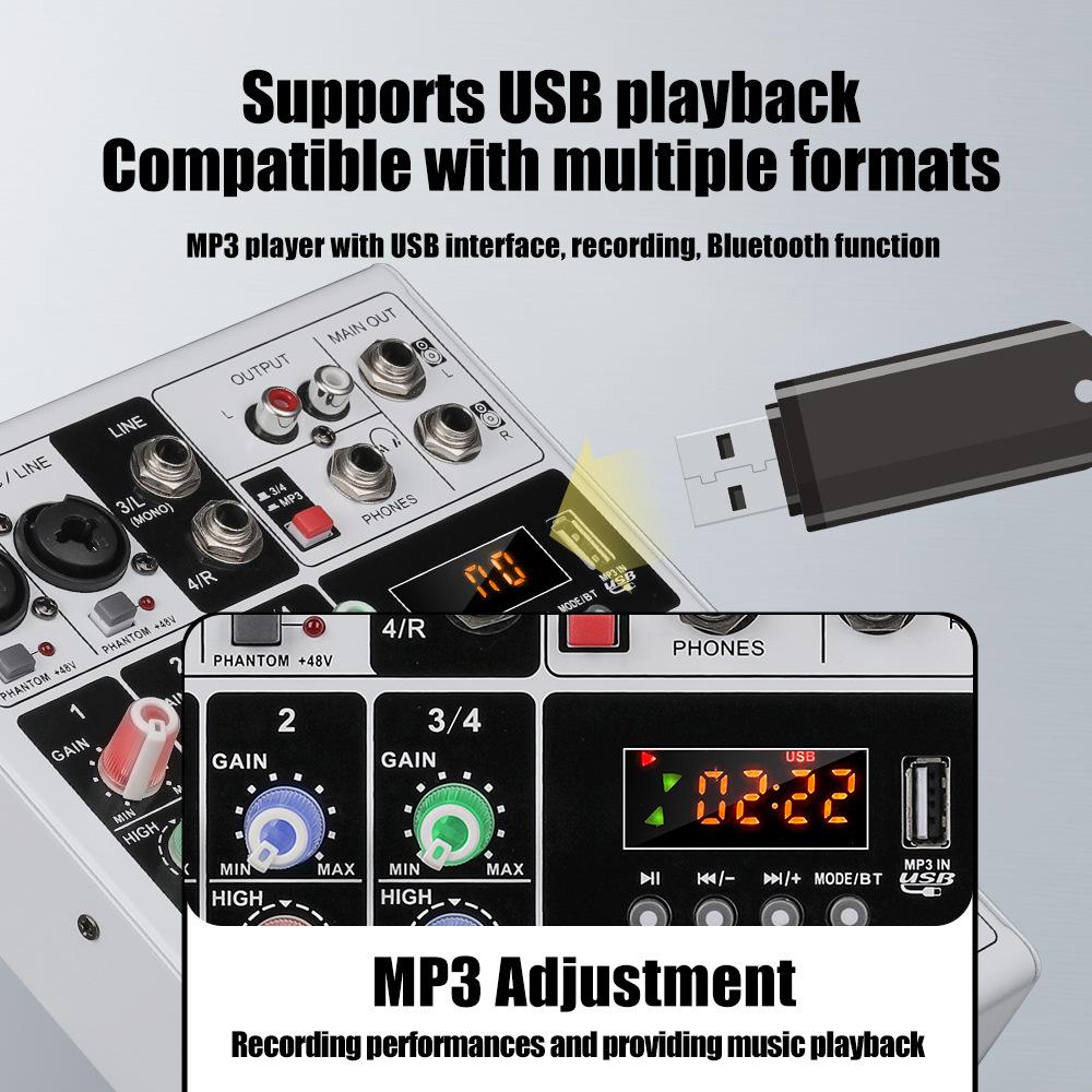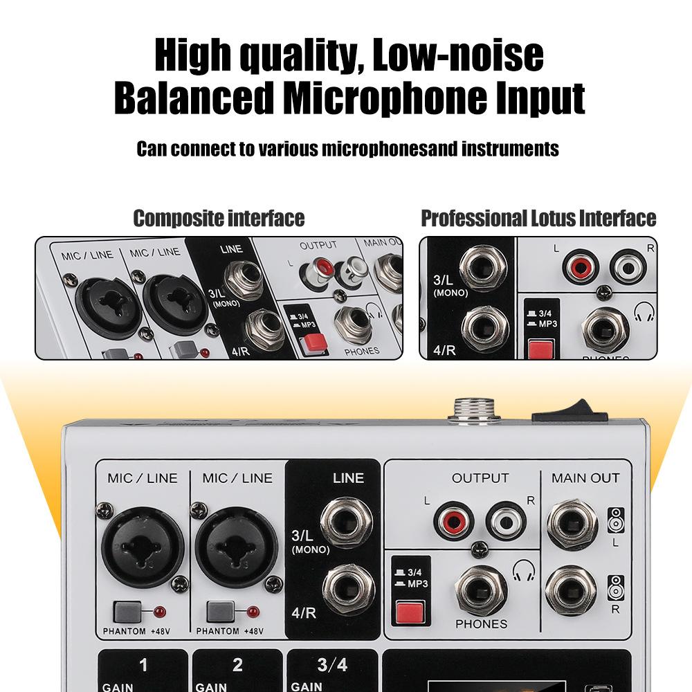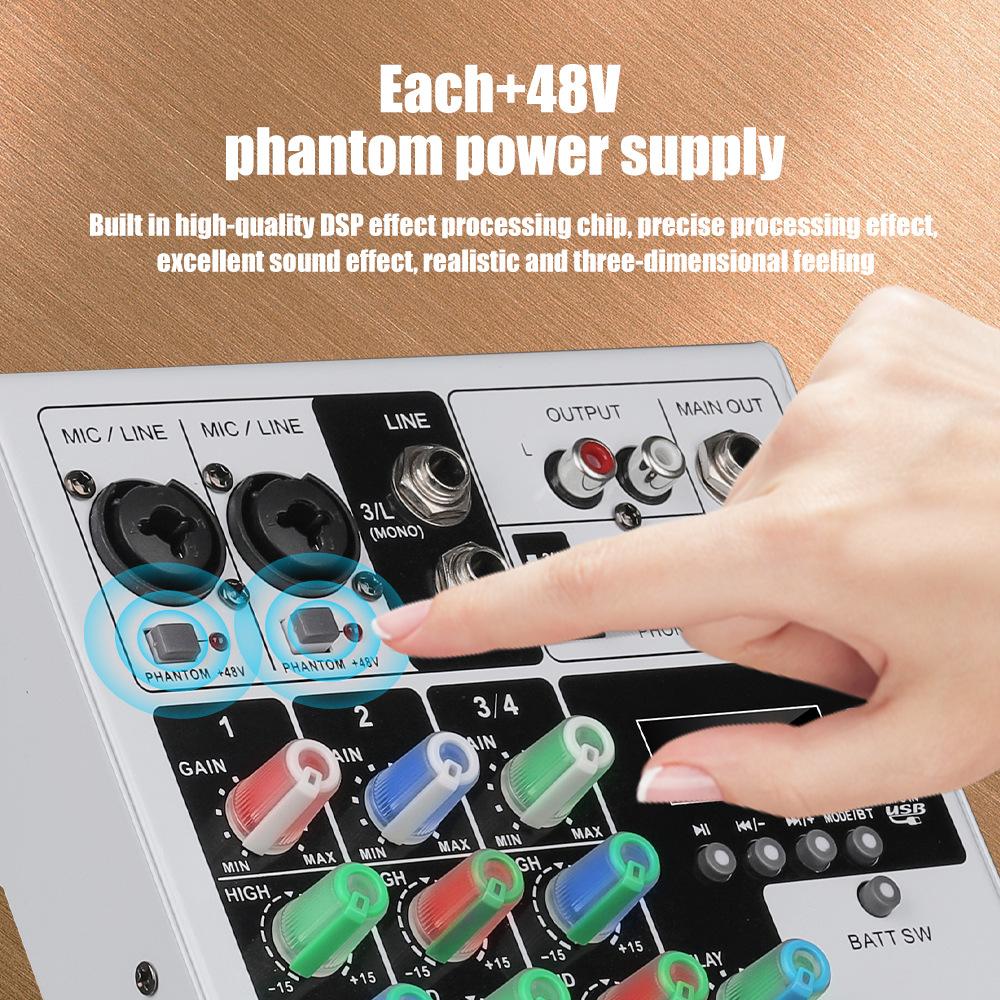 Mixer Bluetooth Pequeno com 4 Canais, Botão RGB, Efeito de Reverb, Microfone, Karaokê, Performance de Palco, Conferência