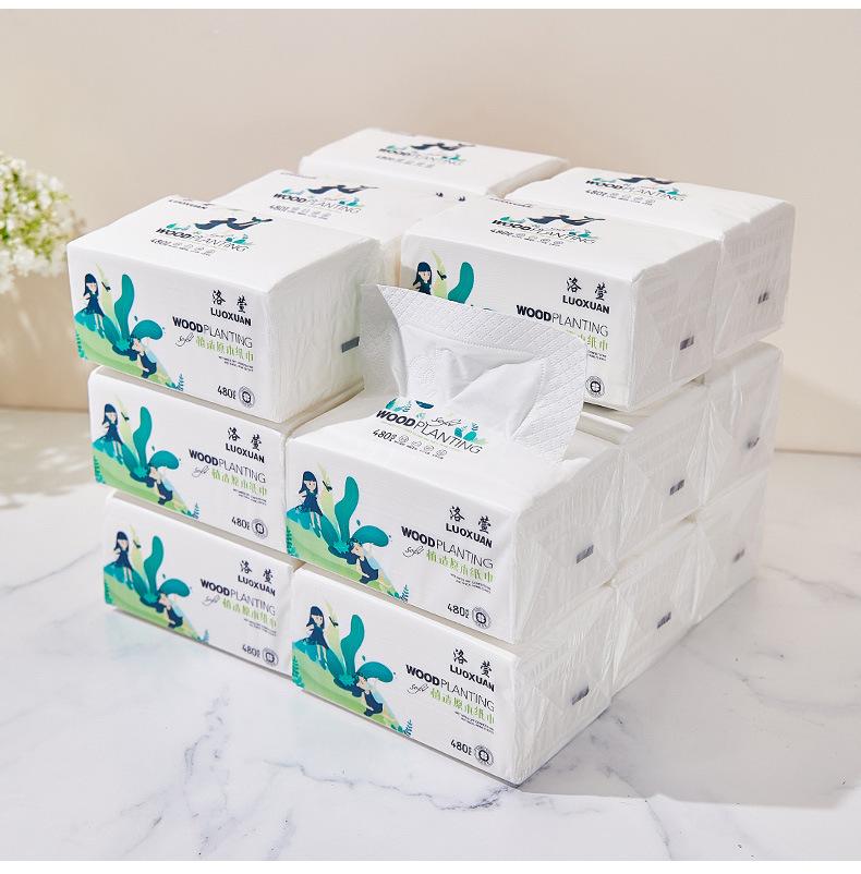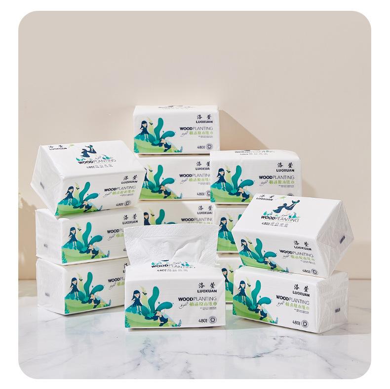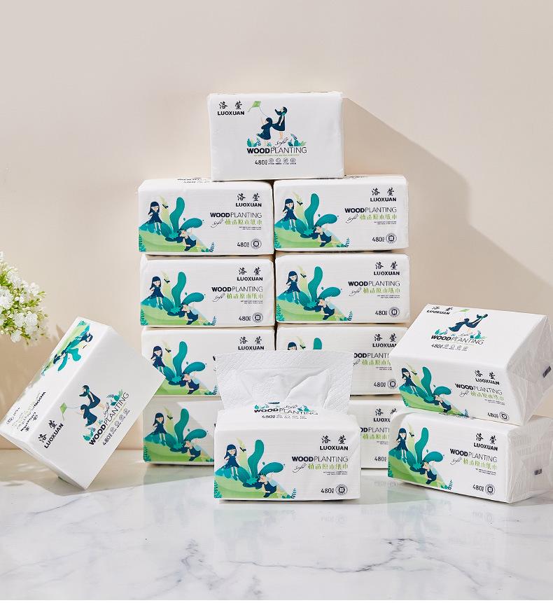 Papel Higiênico Luoxuan 480 Folhas 10 Pacotes Doméstico Doméstico Guardanapos Umedecíveis Lenço Facial Espessado Pacote Grande