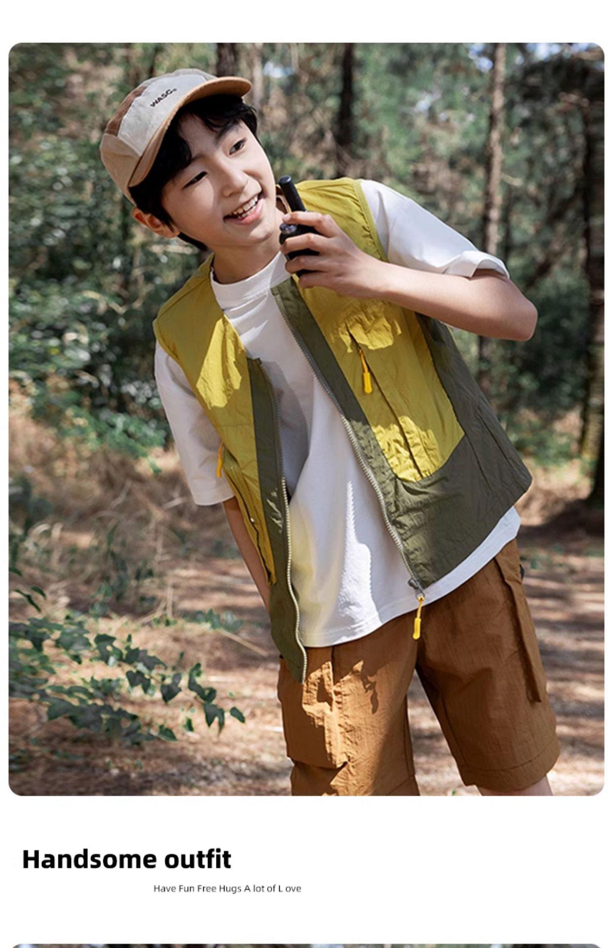 Colete Masculino Secagem Rápida Verão 2025 Novo Estilo Infantil Roupa de Trabalho Outdoor Colete Top Meninas Sem Mangas Impermeável