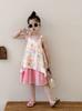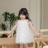 Saia de Verão para Meninas 2025 Vestido Novo Estilo de Verão Crianças Bebê Doce Floral Sem Mangas Vestido de Princesa