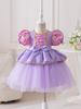Novo Vestido de Princesa de Cabelo Comprido para Bebê vestido Vestido Bolo de Fio Puff para Menina Vestido Infantil de Manga Bufante