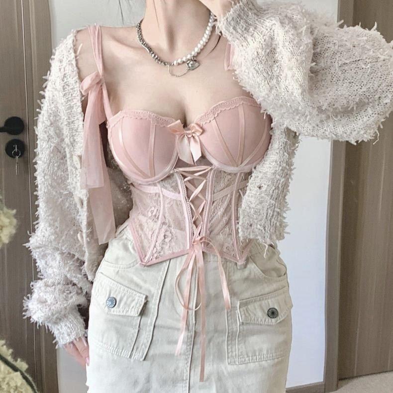 Doce & Sexy Novo Corset Espinha de Peixe Hot Girl Renda Roupa Íntima Regata com Alças Emagrecimento Cintura Top Feminino Costas Lindas Rosa