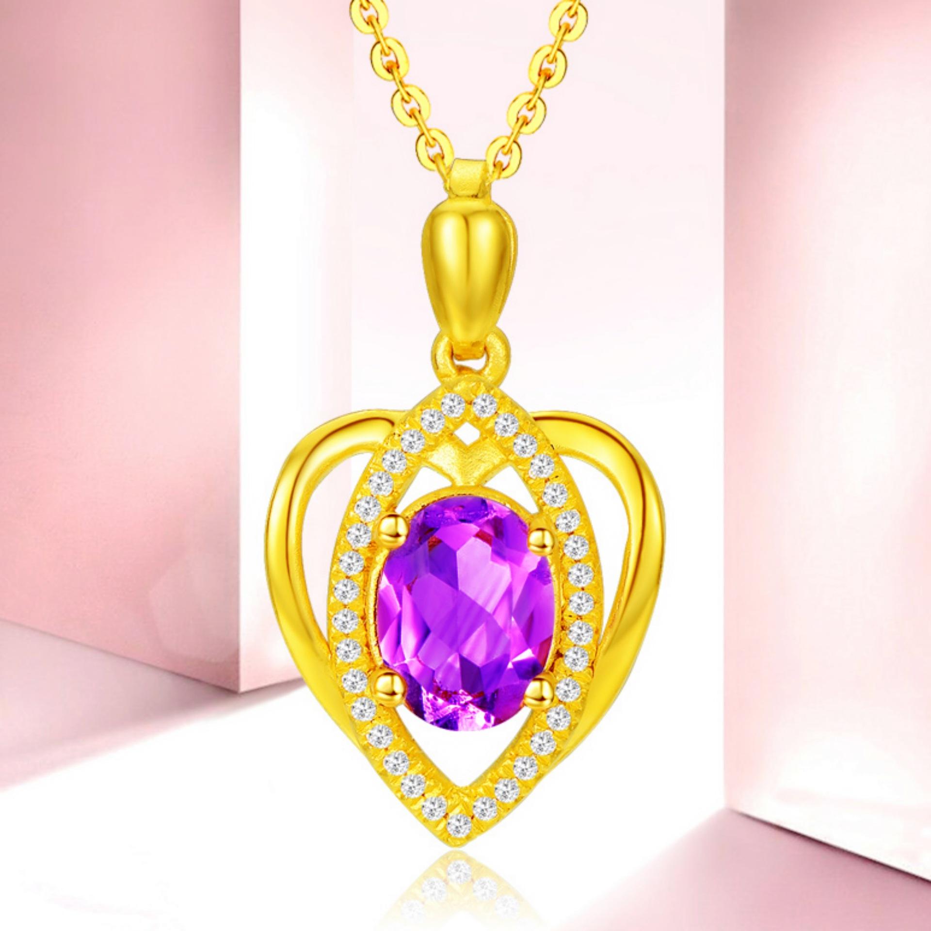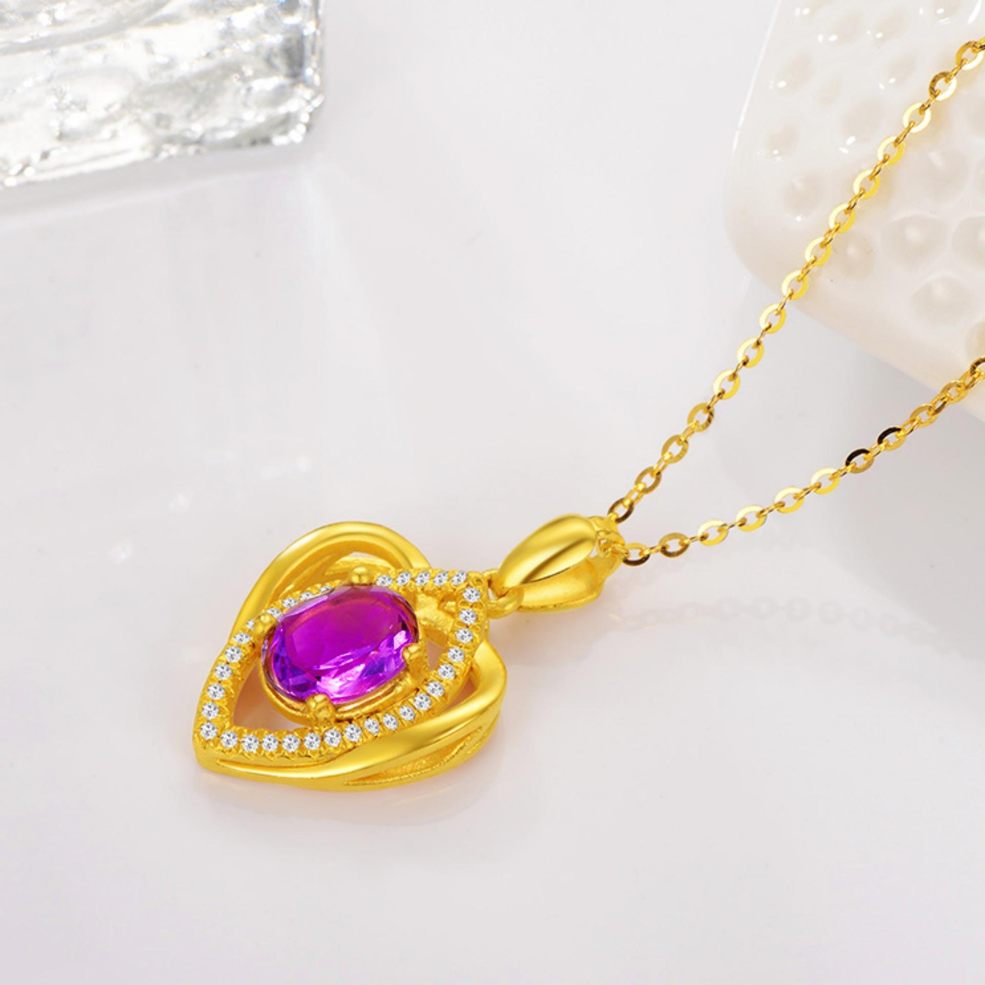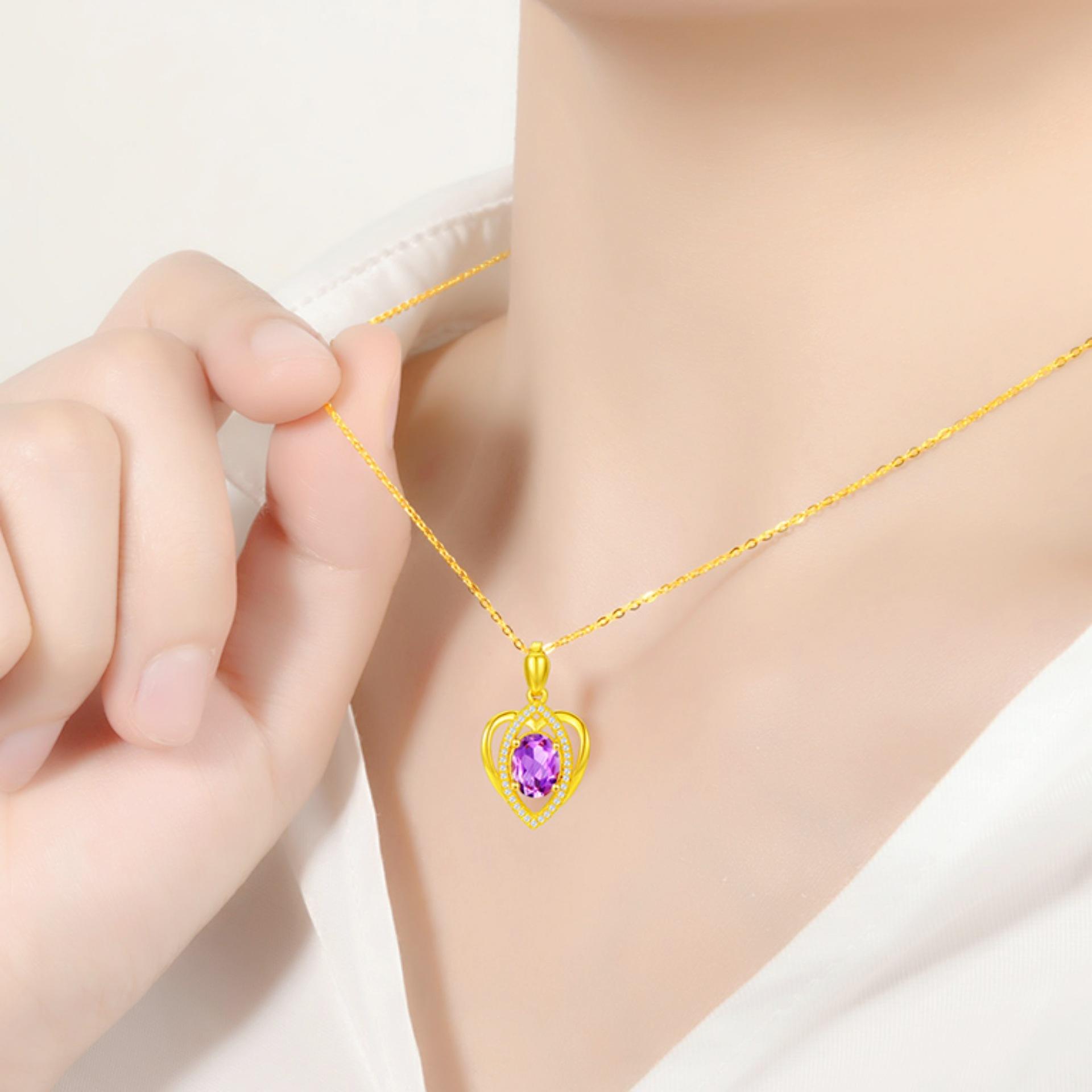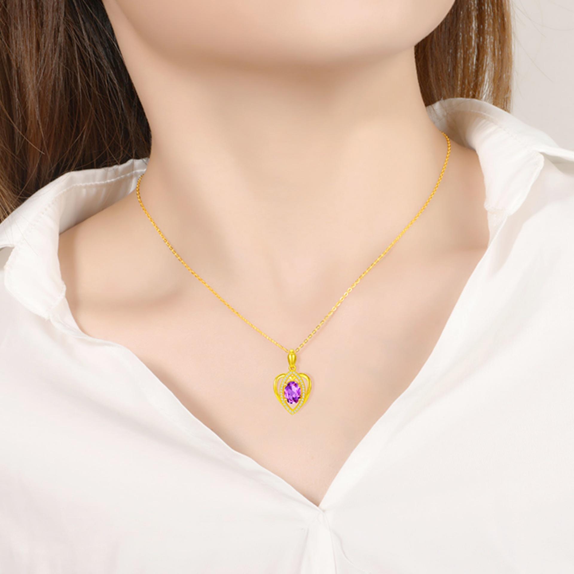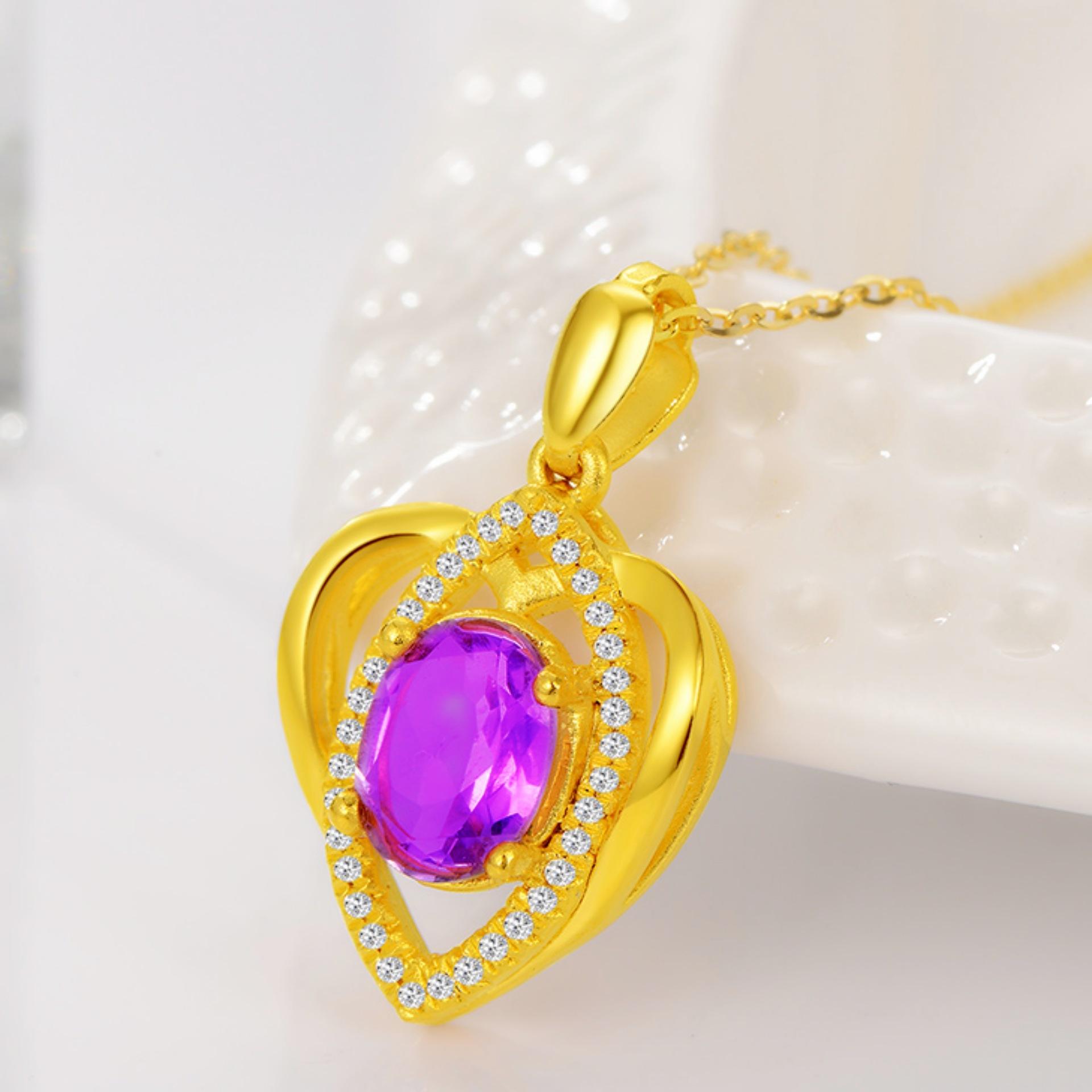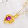 Banhado a ouro Pêssego em forma de coração Cor Gemstone Pingente Colar Ametista Simples em forma de coração Pingente Cor Tesouro Curto Clavícula Cadeia