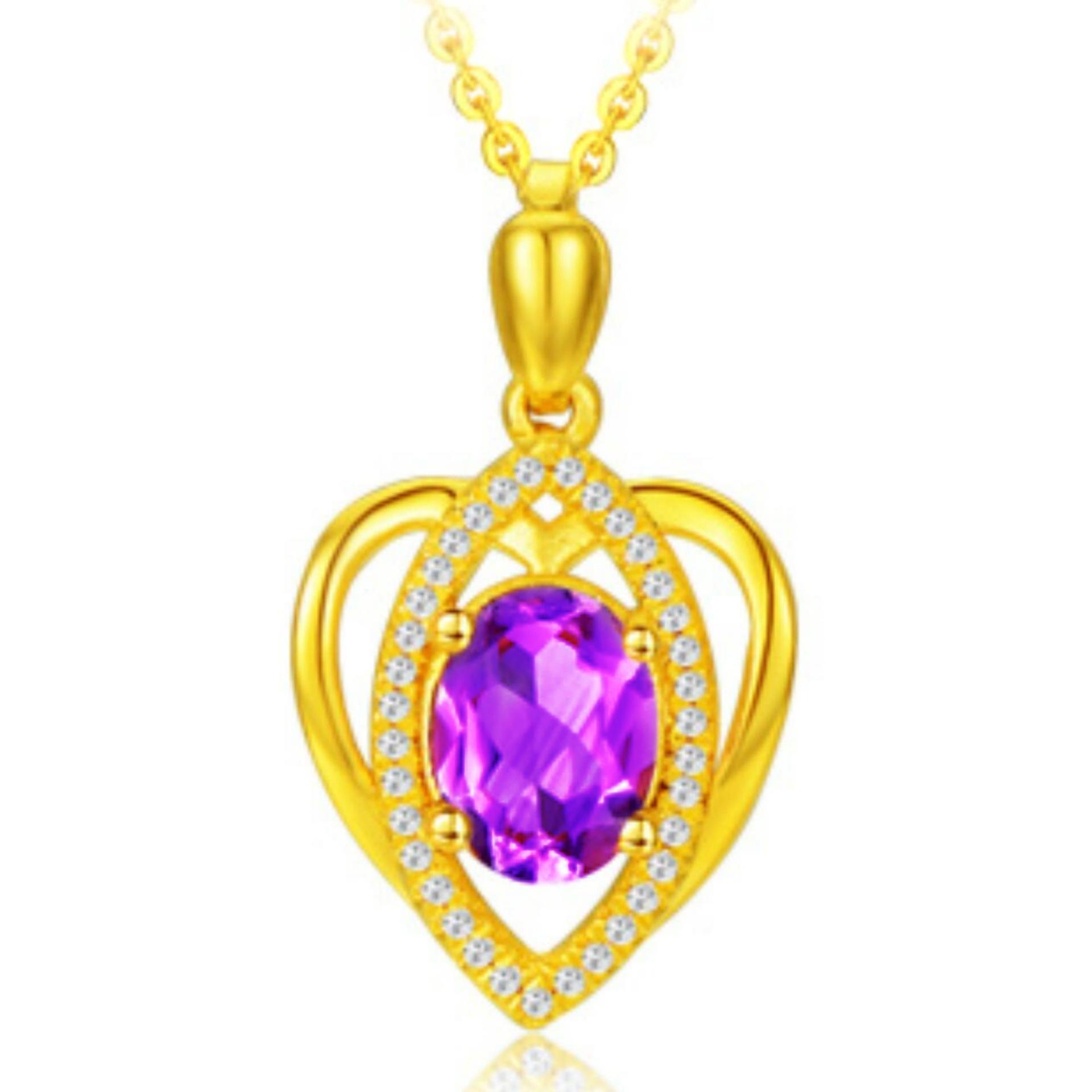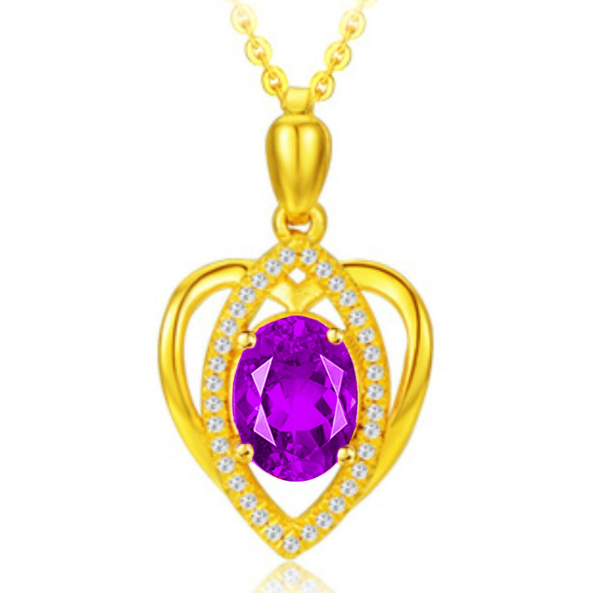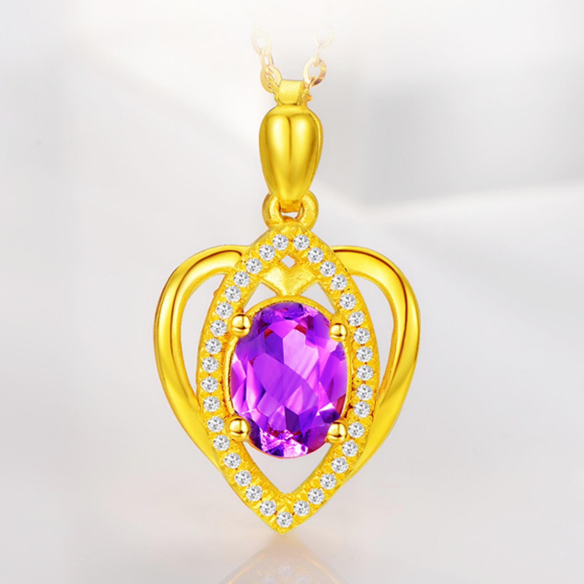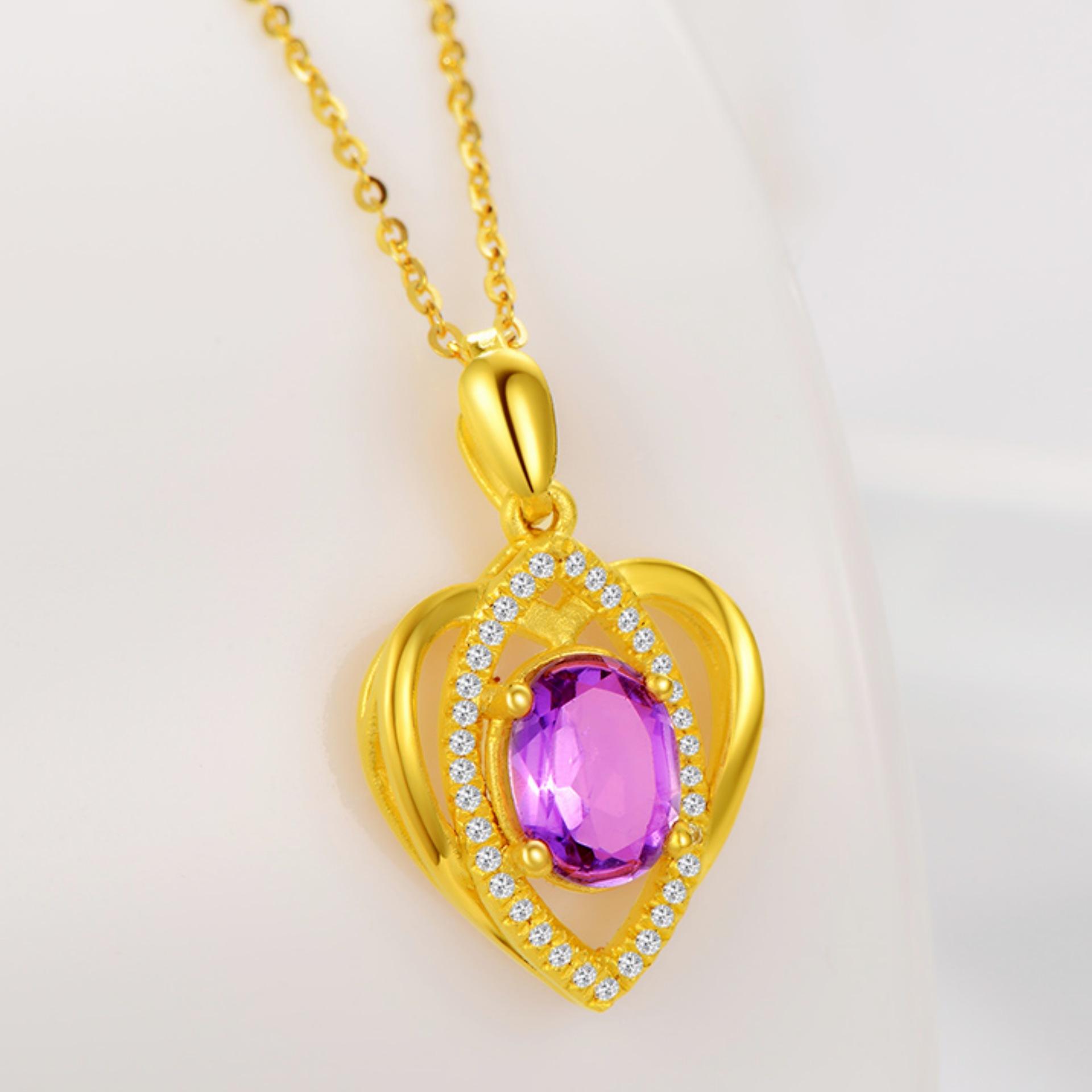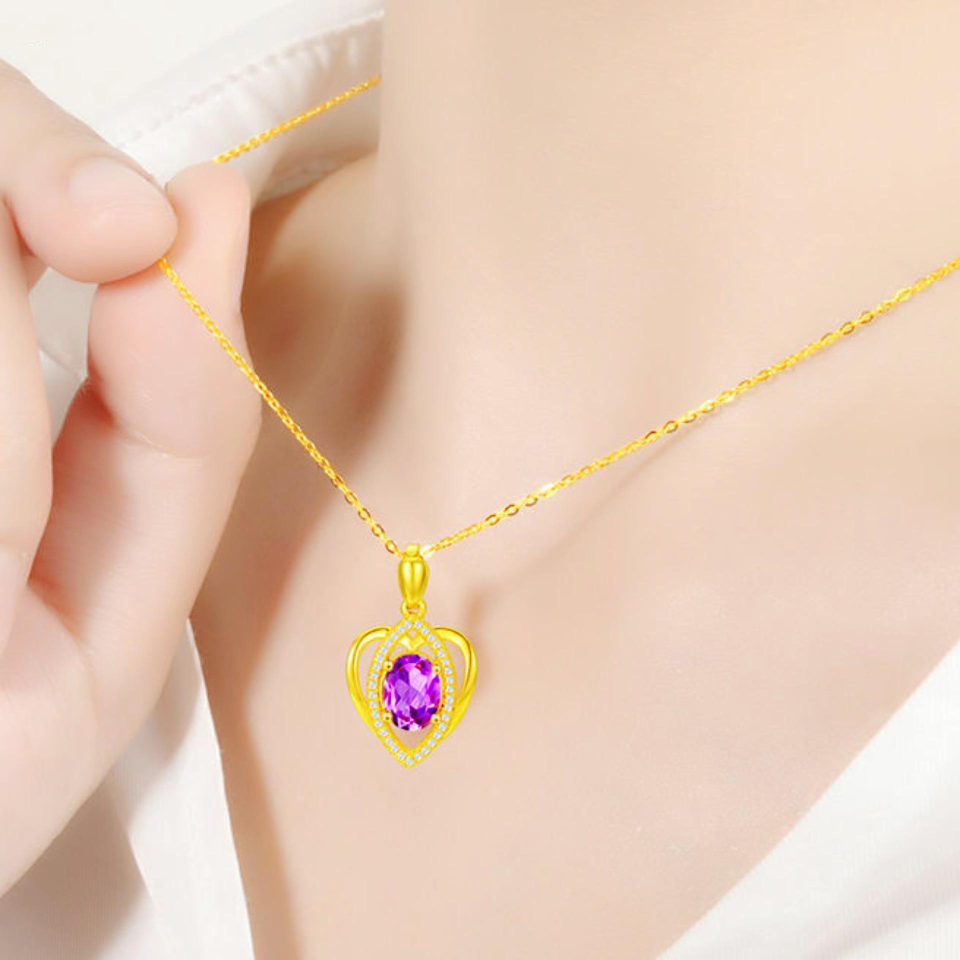 Banhado a ouro Pêssego em forma de coração Cor Gemstone Pingente Colar Ametista Simples em forma de coração Pingente Cor Tesouro Curto Clavícula Cadeia
