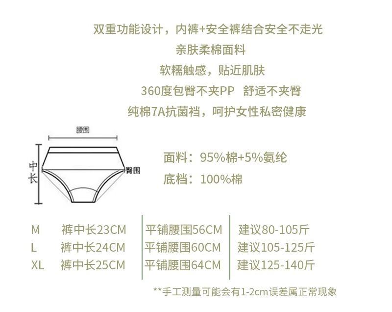 Boxer Pure Cotton Underwear Feminino Cintura Média 7A Antibacteriano Classe A Bebê Algodão Duas em Um Calças de Segurança Anti-Luz