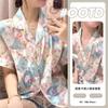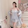 Pijama de Seda Gelo para Mulheres Verão Fina Sexy Regata Shorts Conjunto de Duas Peças Doce Feminino Estampado Conjunto de Roupa de Casa