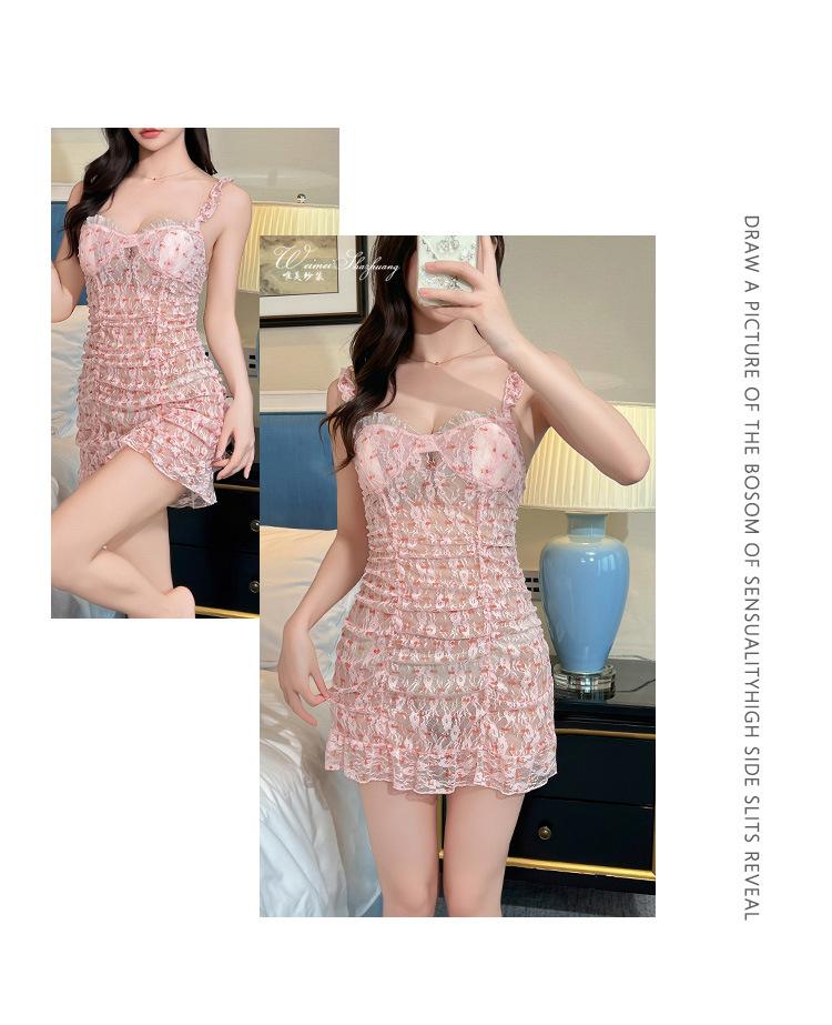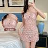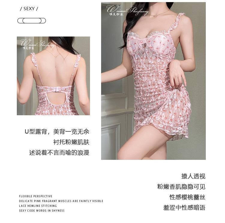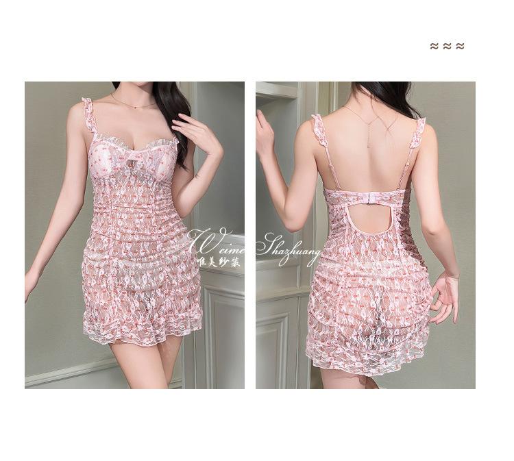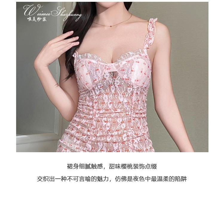 Lindo Camisola de Gaze Nova Transparente com Suspensório Pura Luxúria Pijama Sexy para Mulheres Doce e Fofo Camisola Rosa com Suspensório