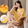 Pijama de Amamentação de Algodão de Gola Redonda no Atacado com Bojos para Mulheres, Verão Maternidade Doce Manga Longa Pós-parto