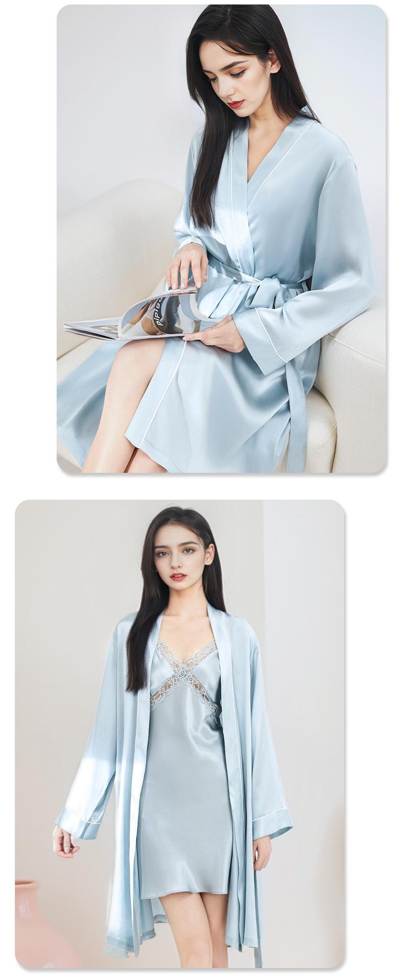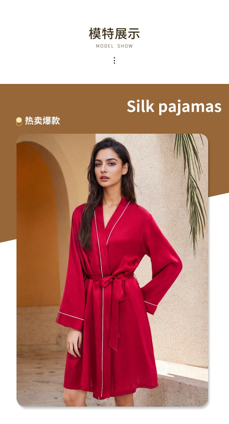Camisola de Verão de Seda Transfronteiriça de Comércio Exterior para Mulheres, Seda de Amoreira 100% de Alta Qualidade, Pode Ser Usada Fora, Roupa de Casa, Robe Único, Personalizado