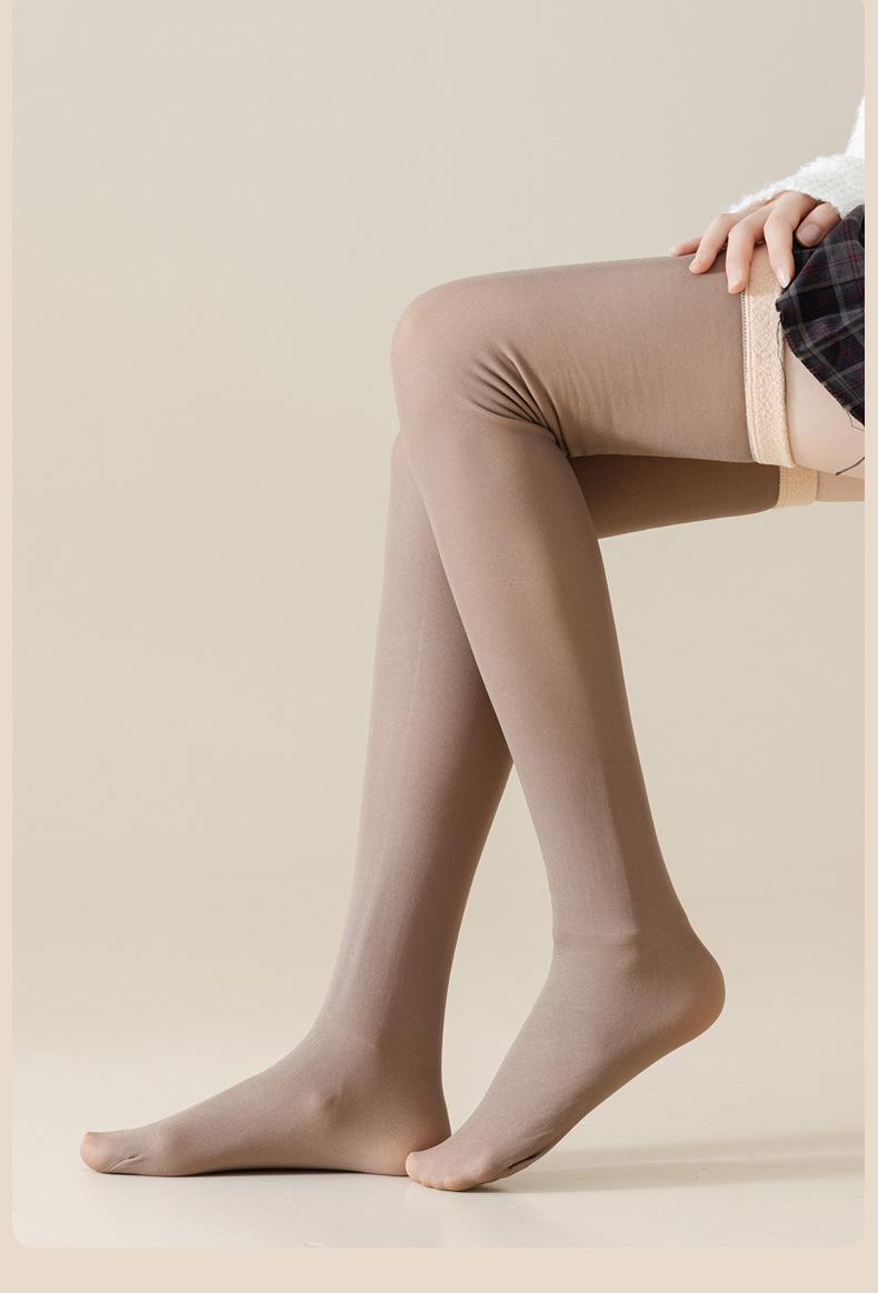 Meias 3/4 de carne falsa femininas outono e inverno forradas com lã sexy meias pretas cor da pele quentes grossas meias até a coxa atacado