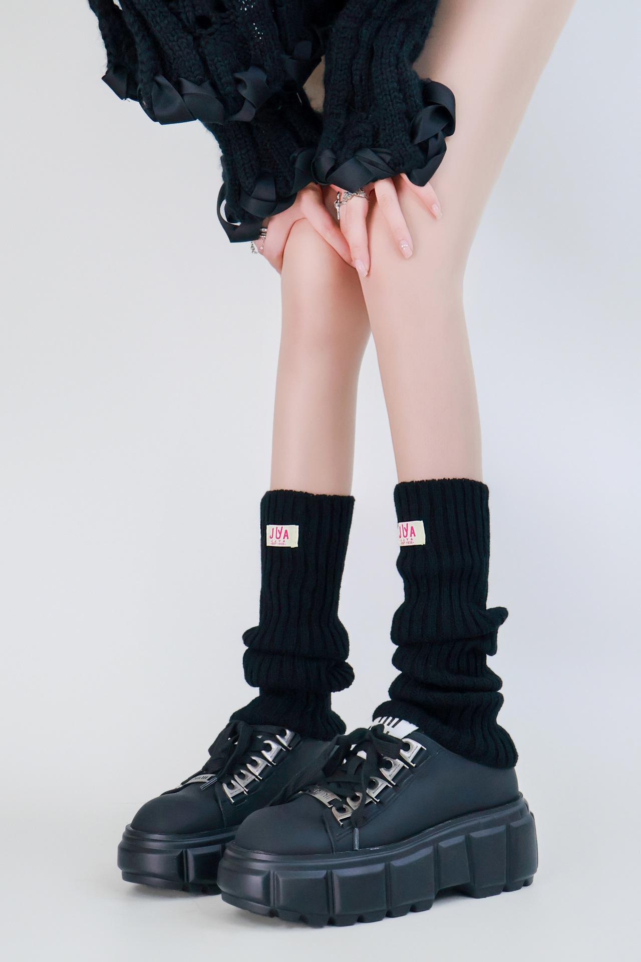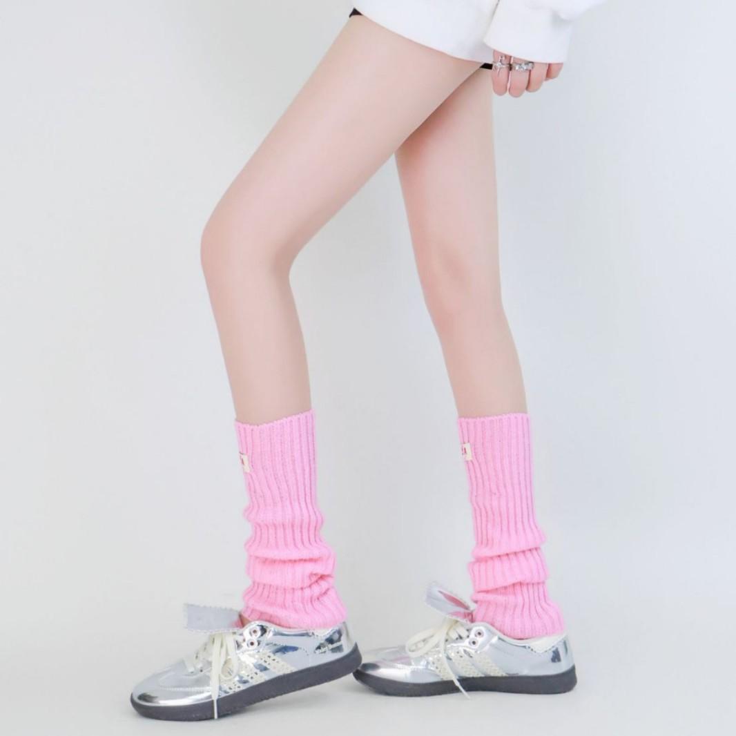 Coberturas de Meias para Outono e Inverno, Design Casual com Patch de Letra, Meias Folgadas, Roupa Exterior Tricotada, Coberturas de Pernas Quentes para Outono e Inverno