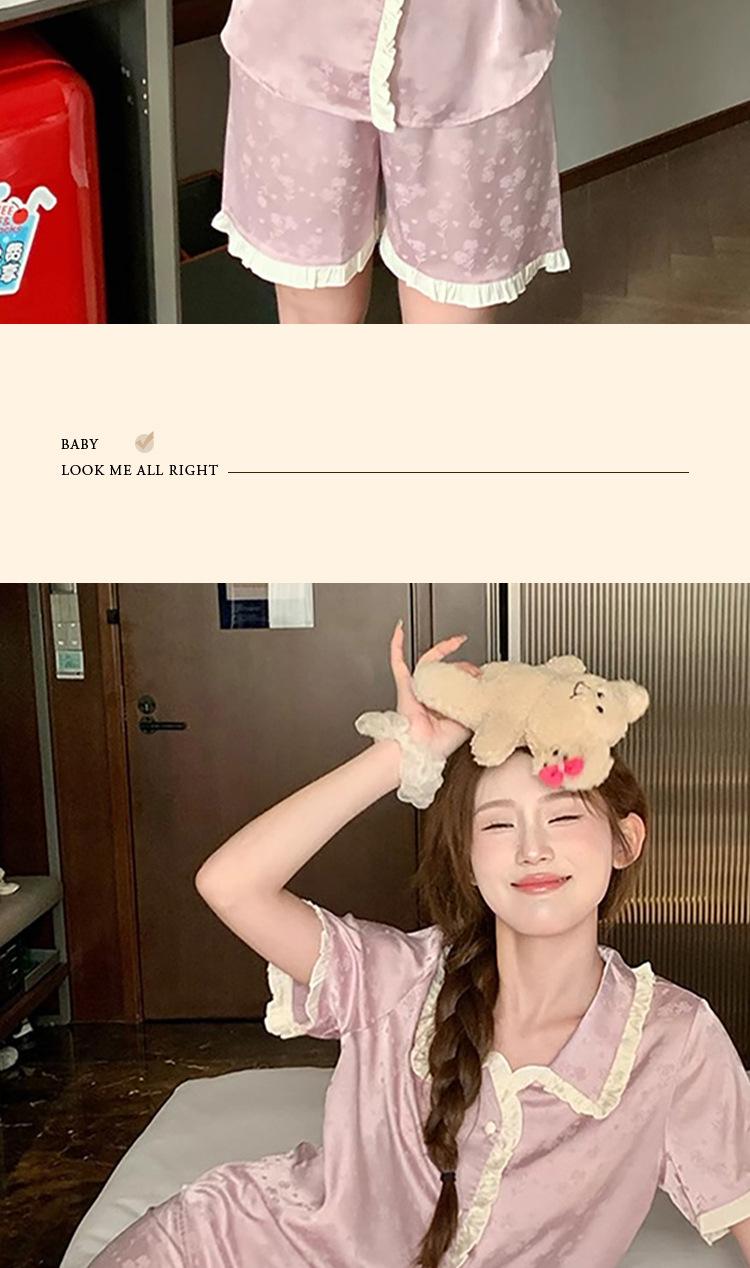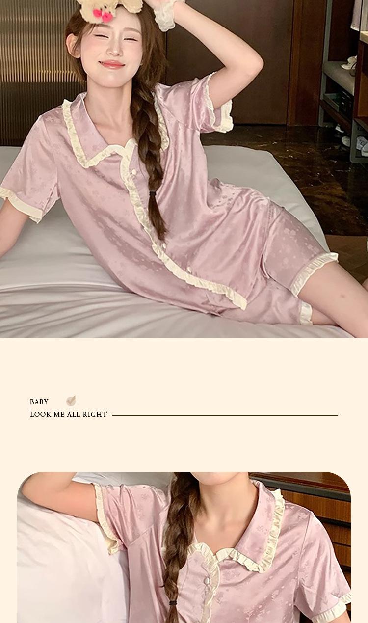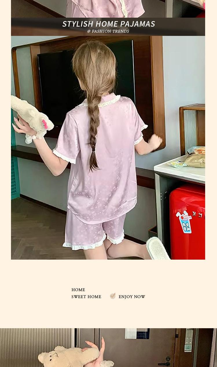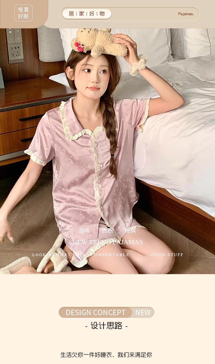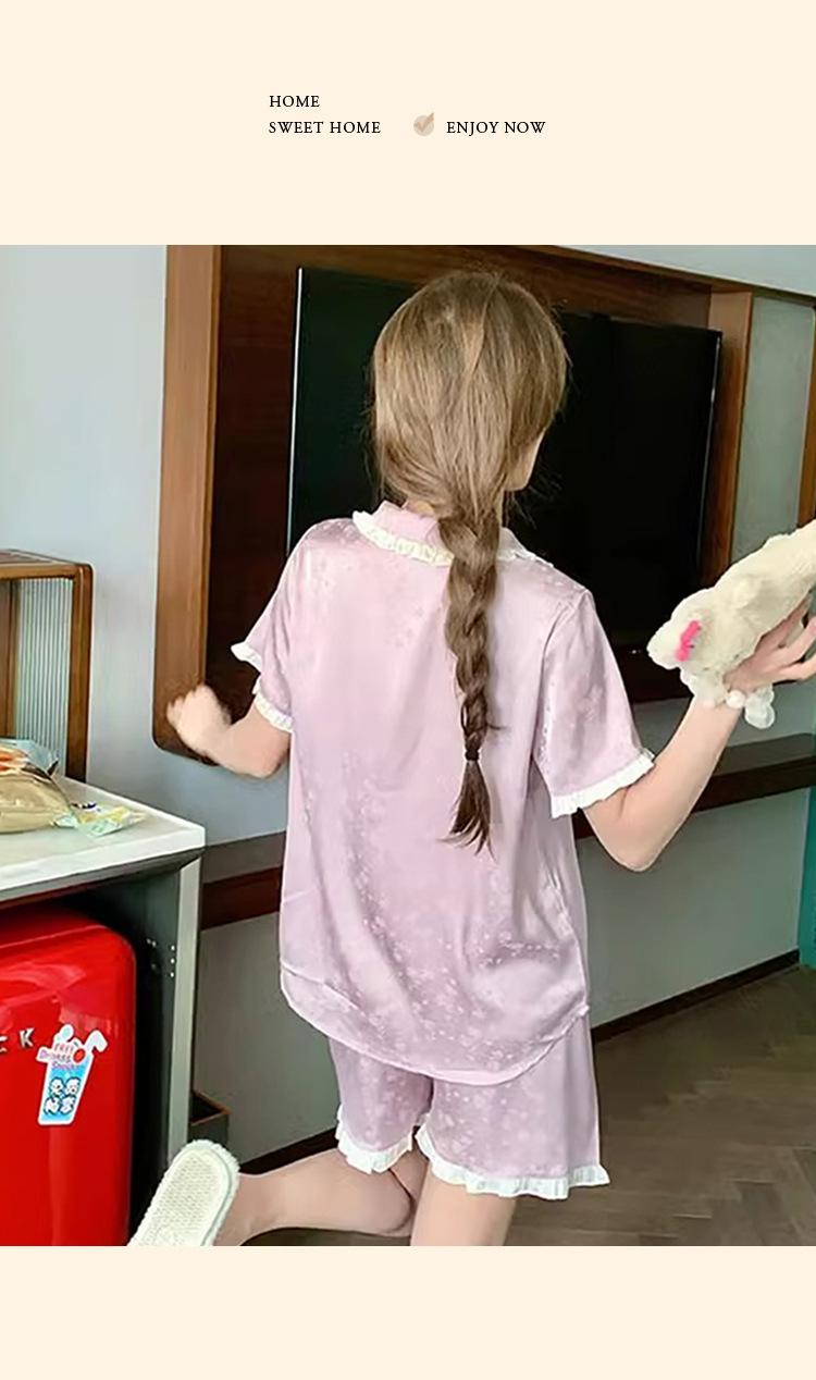 Pijama de seda gelo de luxo de alta qualidade francesa para mulheres, verão, novo estilo, estilo pequeno, jacquard, manga curta, roupa de casa, conjunto, atacado