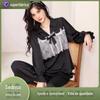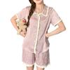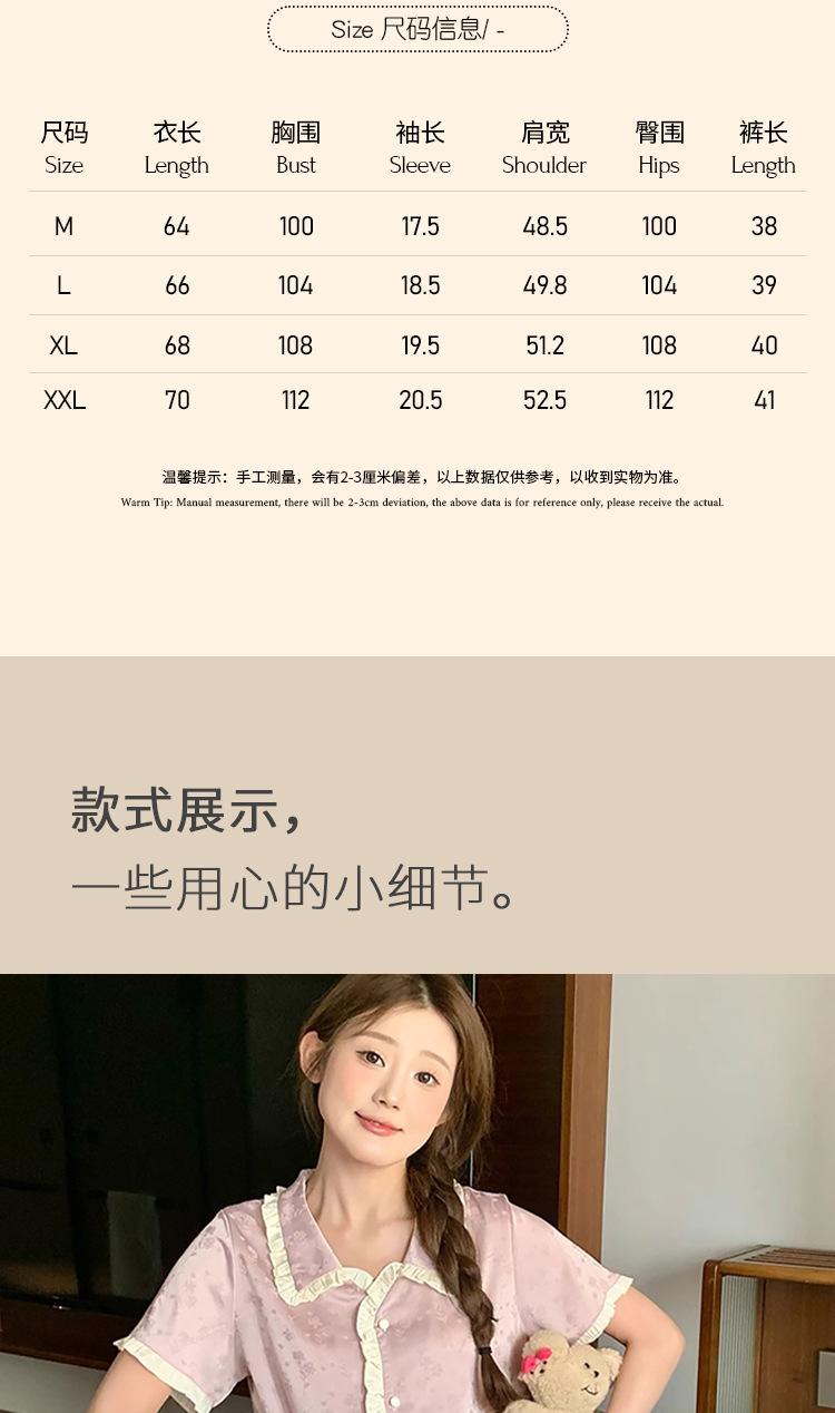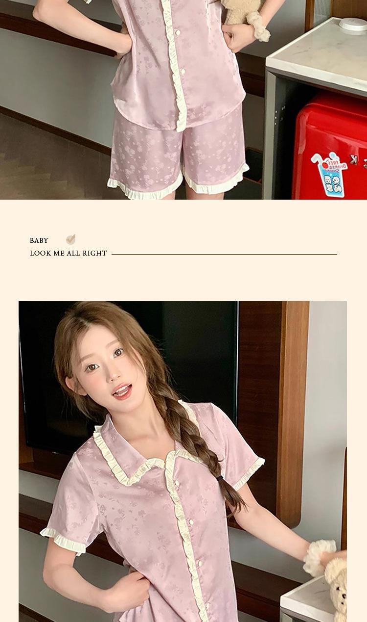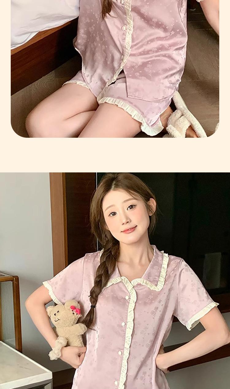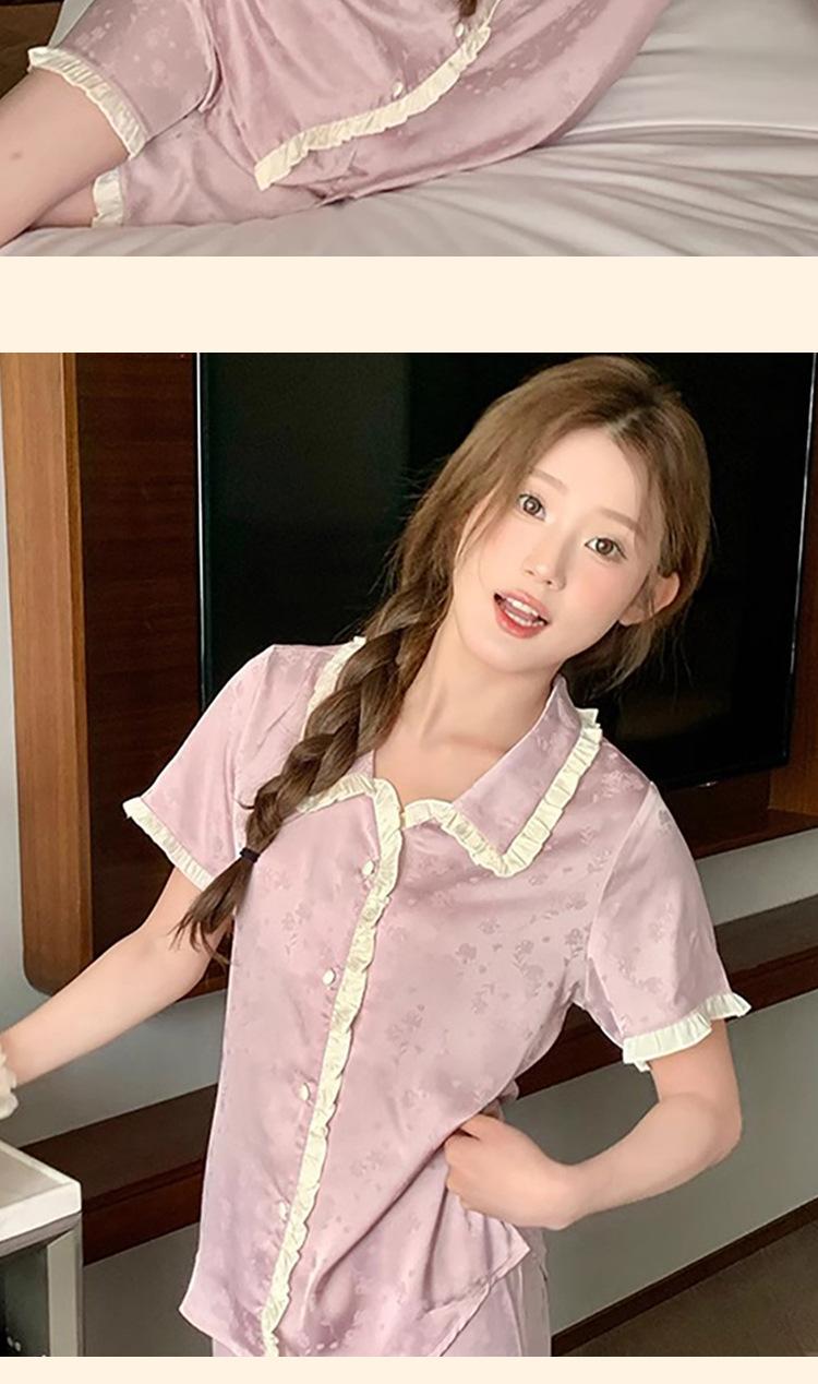 Pijama de seda gelo de luxo de alta qualidade francesa para mulheres, verão, novo estilo, estilo pequeno, jacquard, manga curta, roupa de casa, conjunto, atacado
