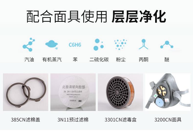 Caixa de filtro 3M3301CN lata única anti-gás orgânico formaldeído poeira química decoração autoescorvante caixa de filtro atacado