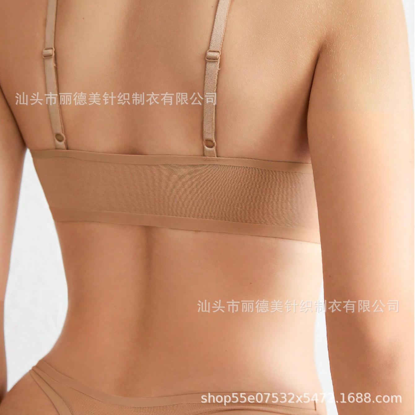 Conjunto de Sutiã Sexy com Transparência Europeu e Americano Transfronteiriço Feminino Sem Aro de Aço Conjunto de Roupa Íntima Sexy de Malha