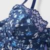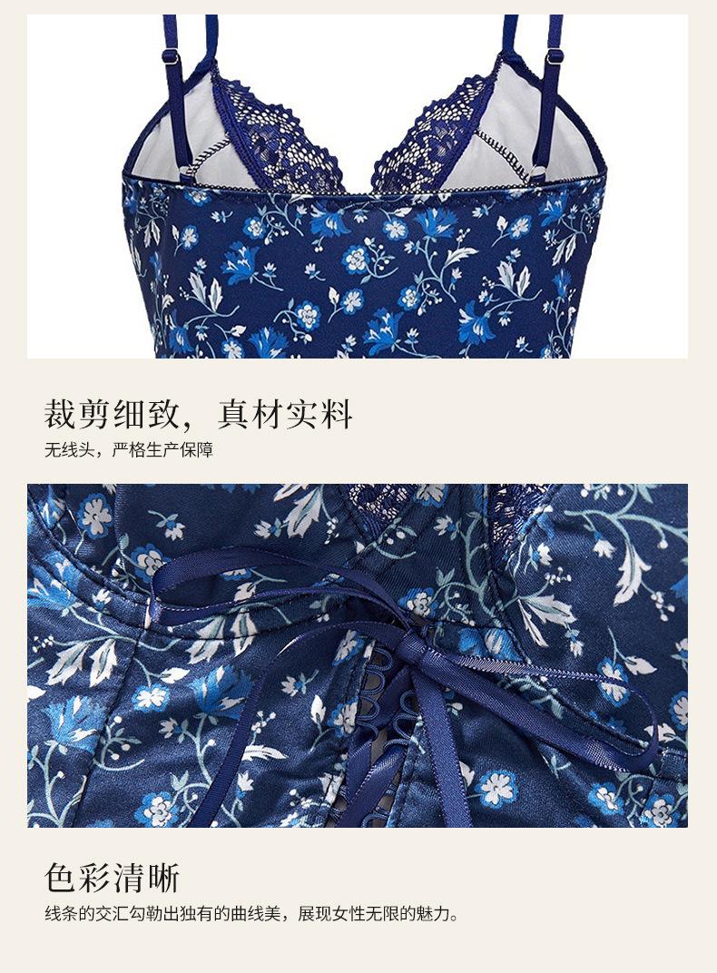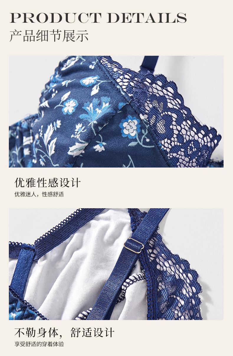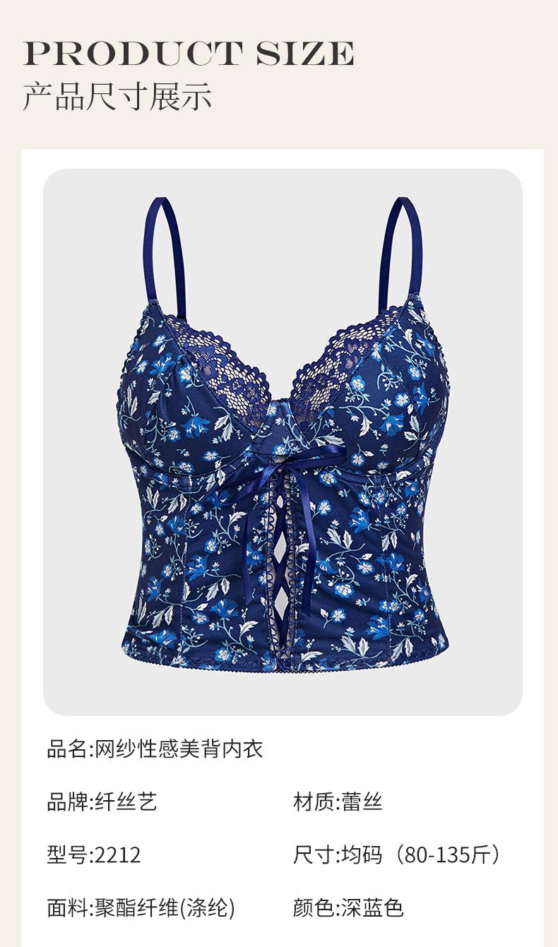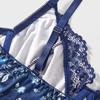Europeu e Americano Transfronteiriço Azul Escuro Renda com Cadarço Malha Sexy Costas Roupa Íntima com Aro de Aço Top Cintura Justa Alça Estampada