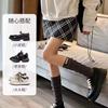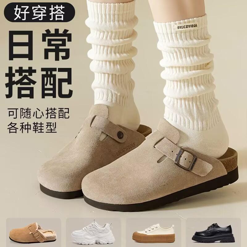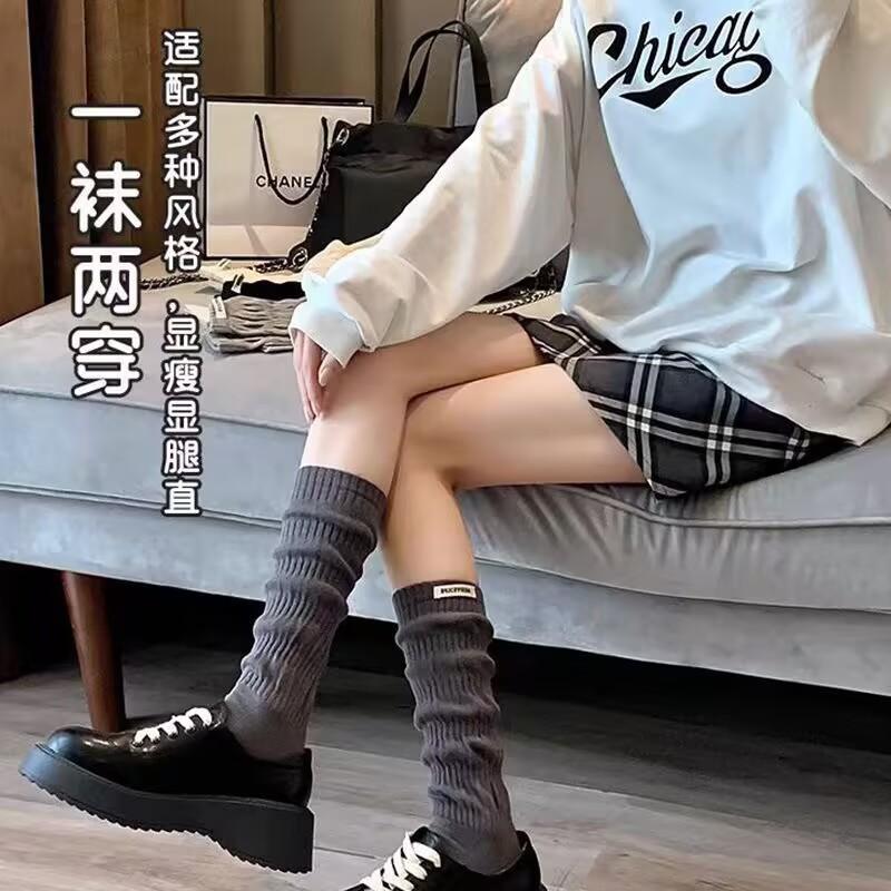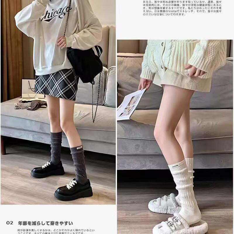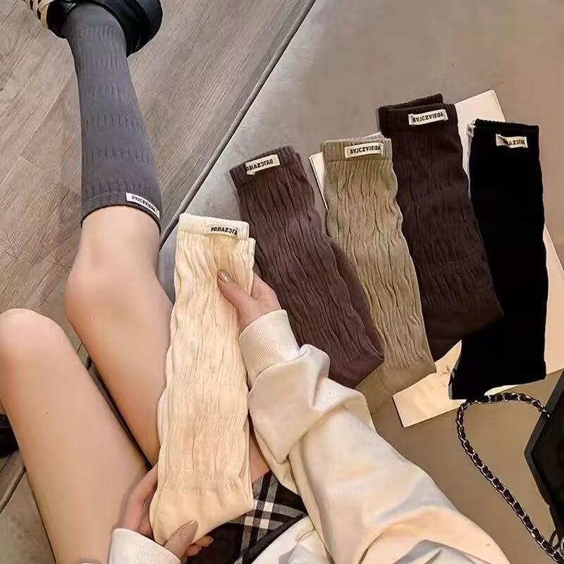 Meias Pretas de Bezerro da Moda para Outono e Inverno para Mulheres, Meias Slouch de Cor Sólida Longas, Versátil para Combinar com Mocassins