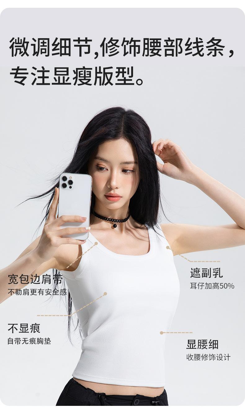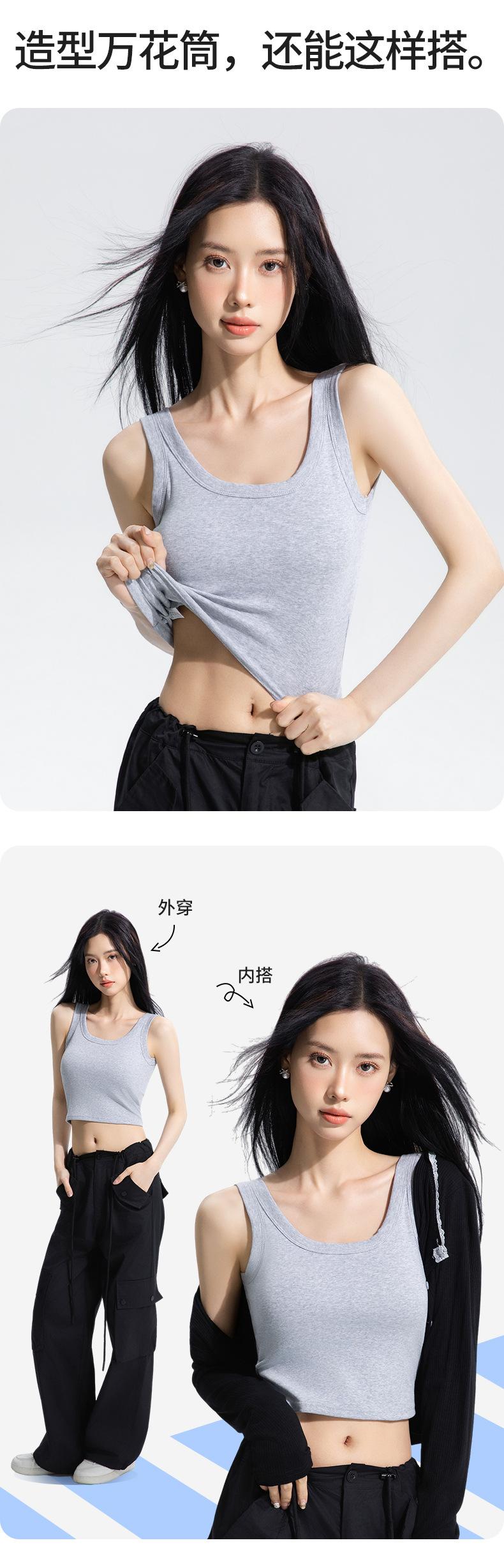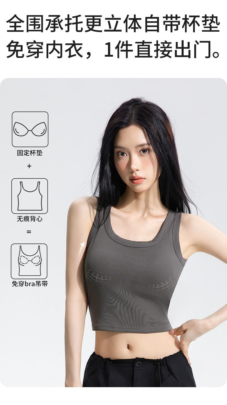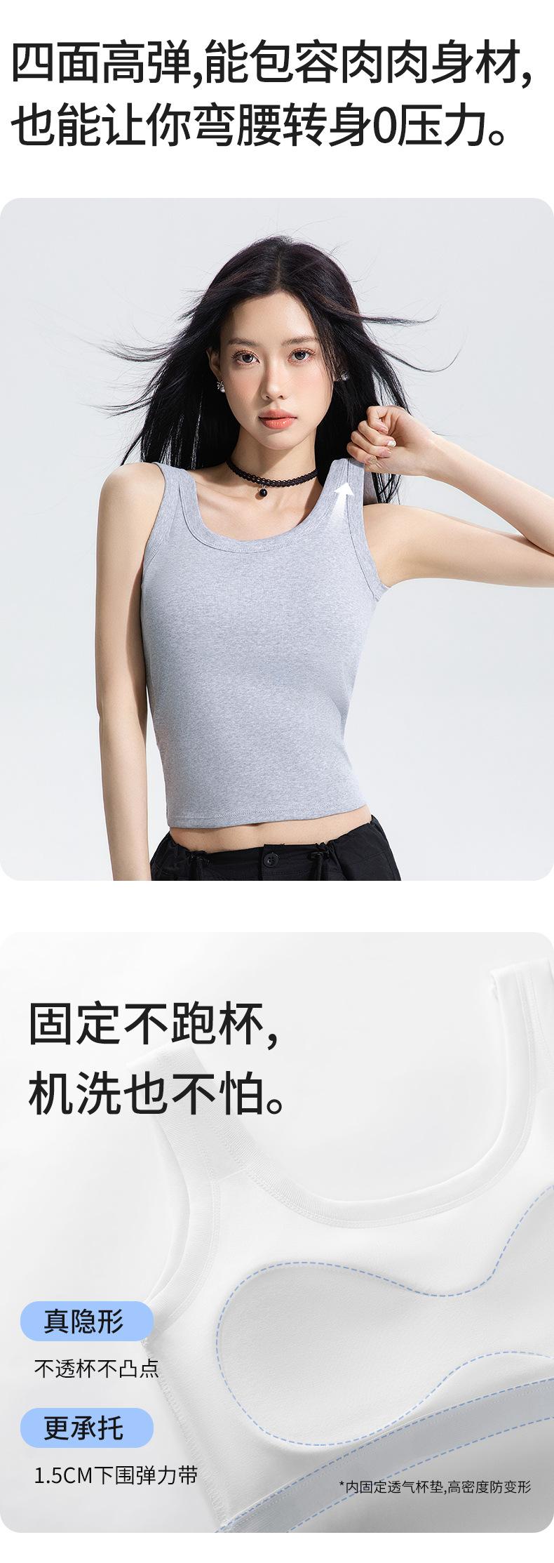 【Pontos de venda】:Textura canelada macia e glutinosa, regata de alta elasticidade e amiga da pele com bojos de sutiã embutidos. Suporte de cobertura total para um formato mais tridimensional, sem necessidade de usar sutiã, 1 peça para uso direto.