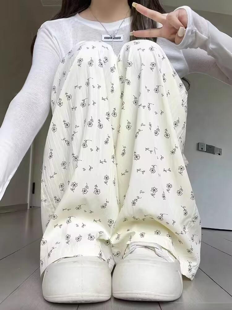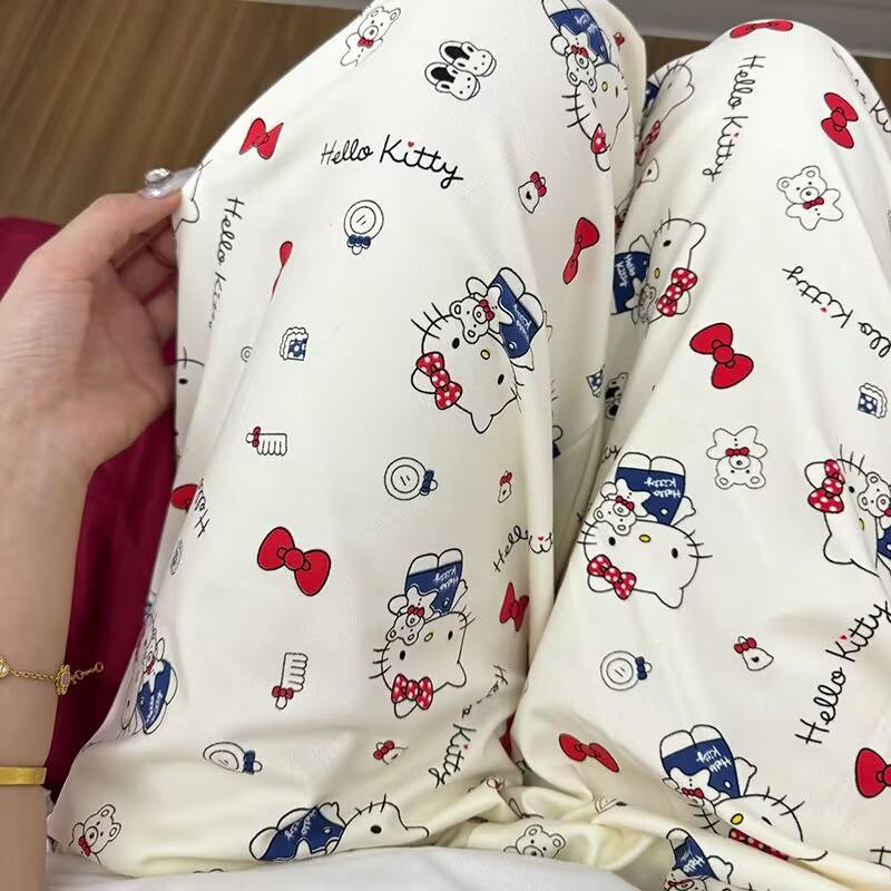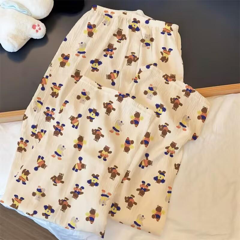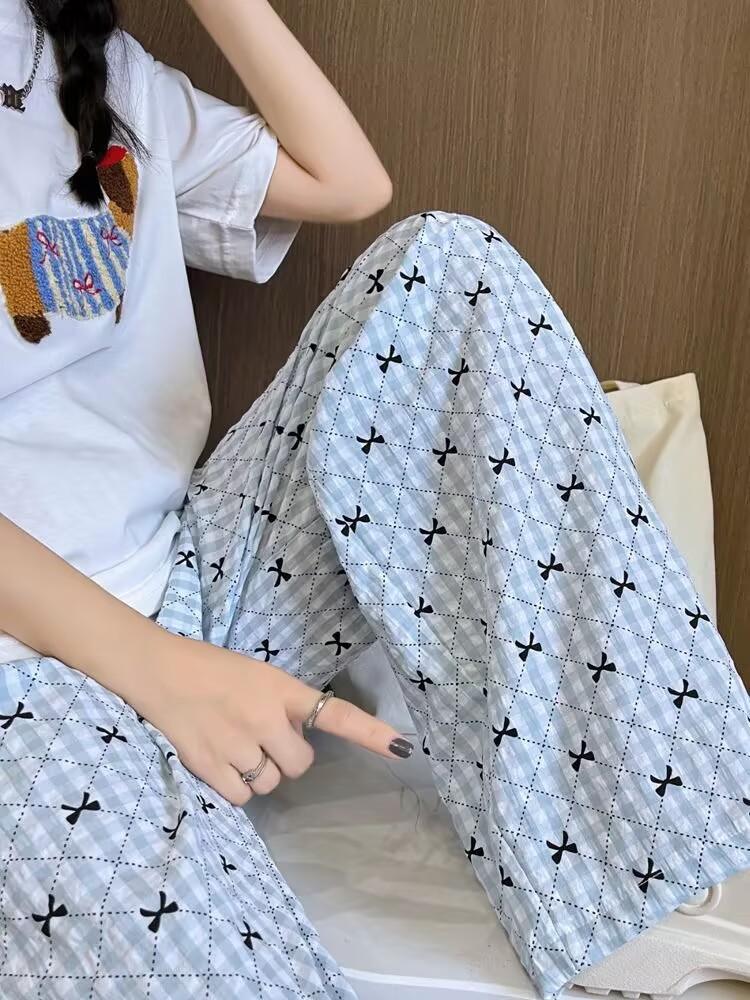 Calças de Pijama Femininas Novo Estilo Verão Soltas Algodão Nuvem Coreano Calças de Lounge Roupa de Dormir para Casa Podem Ser Usadas Fora