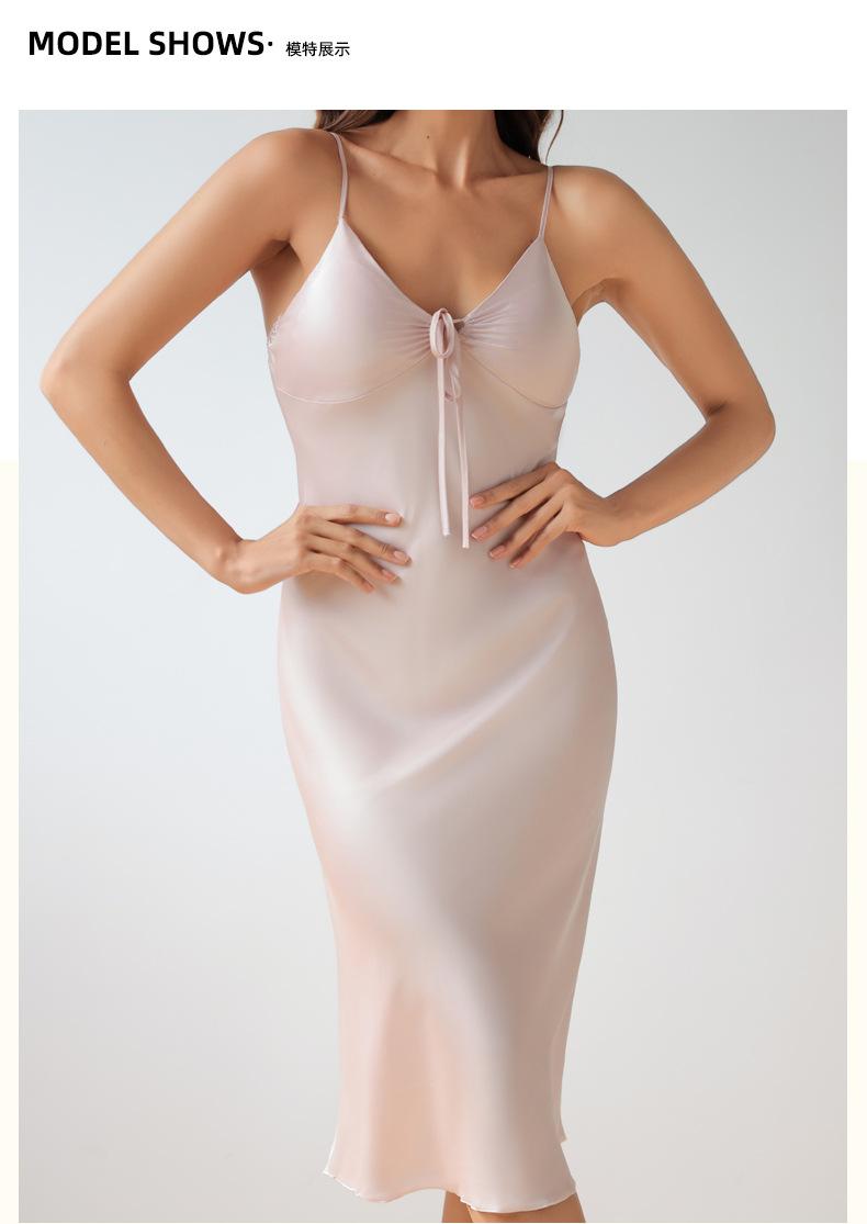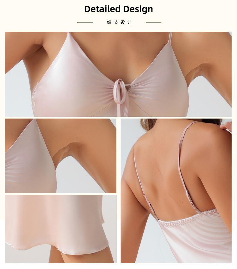 Pijama Sexy de Cetim Chiffon Transfronteiriça da Amazon com Bojos para Mulheres Verão Vestido de Alças Camisola sem Costas Roupa de Casa 3150