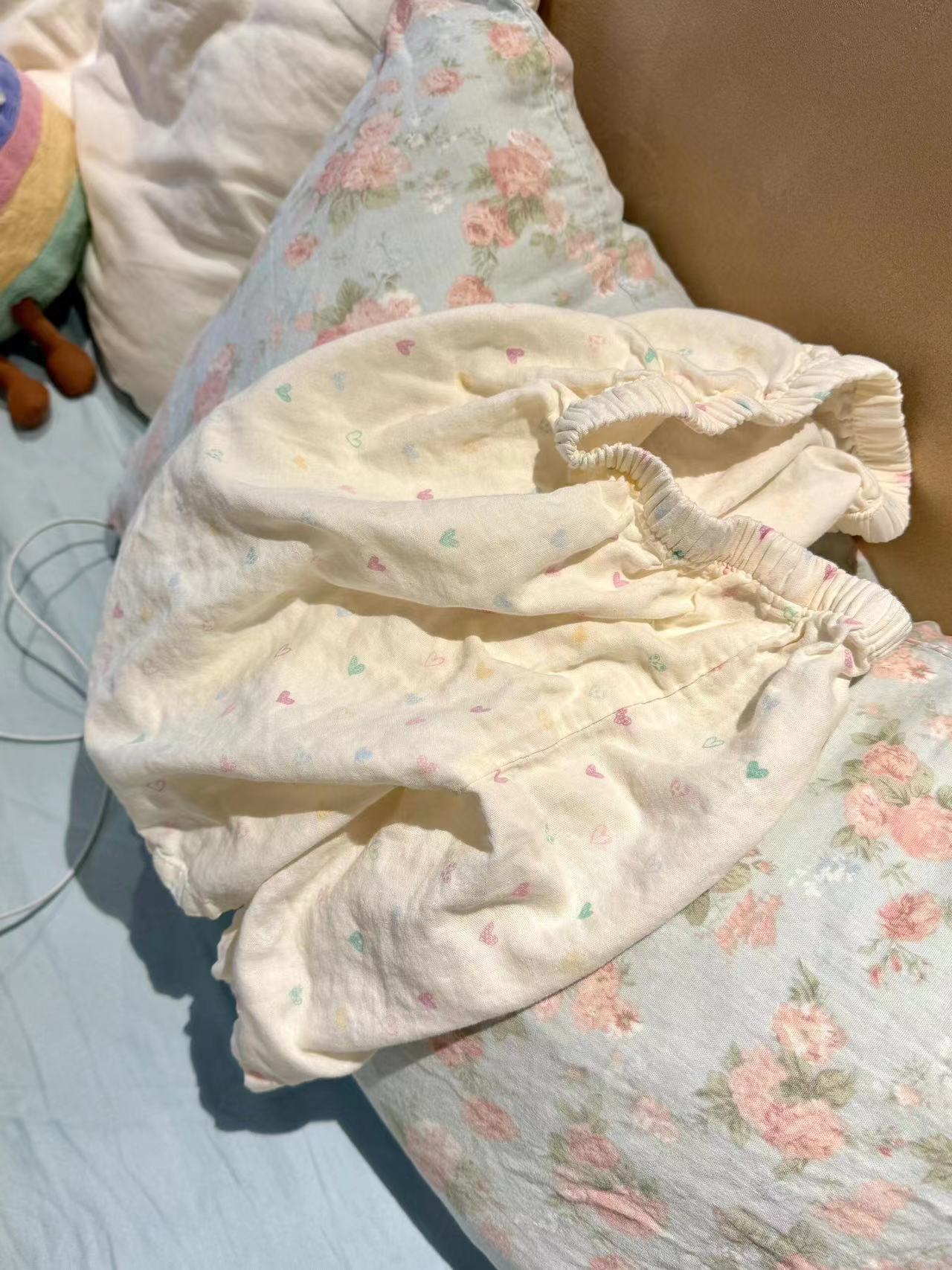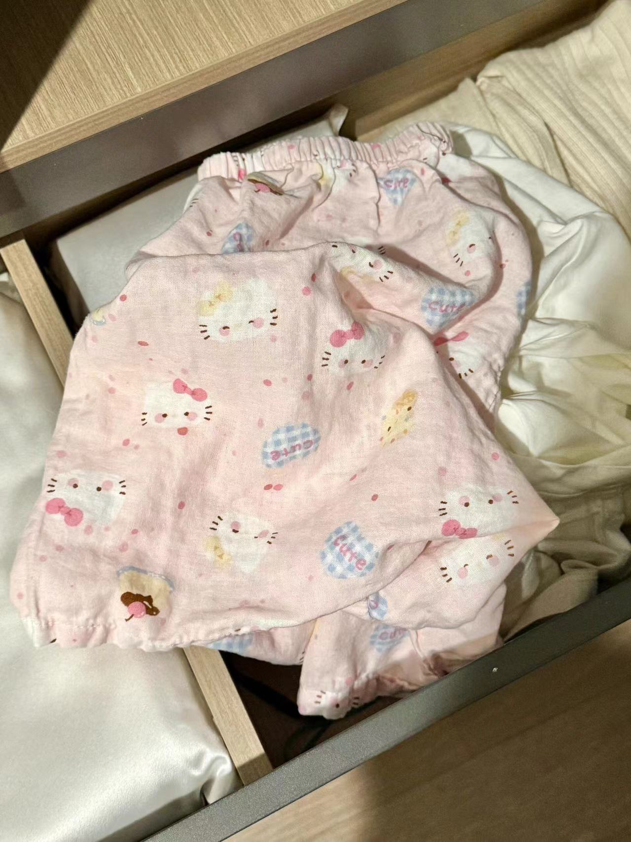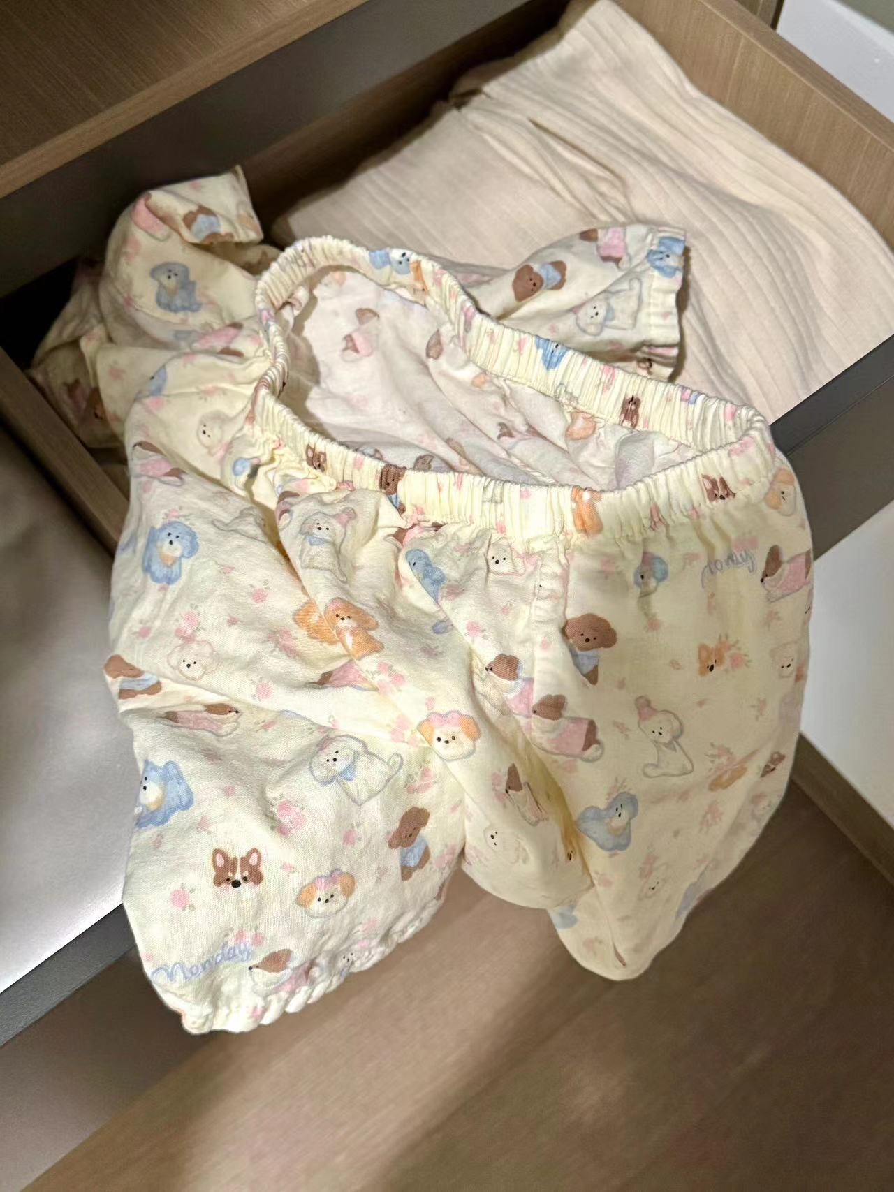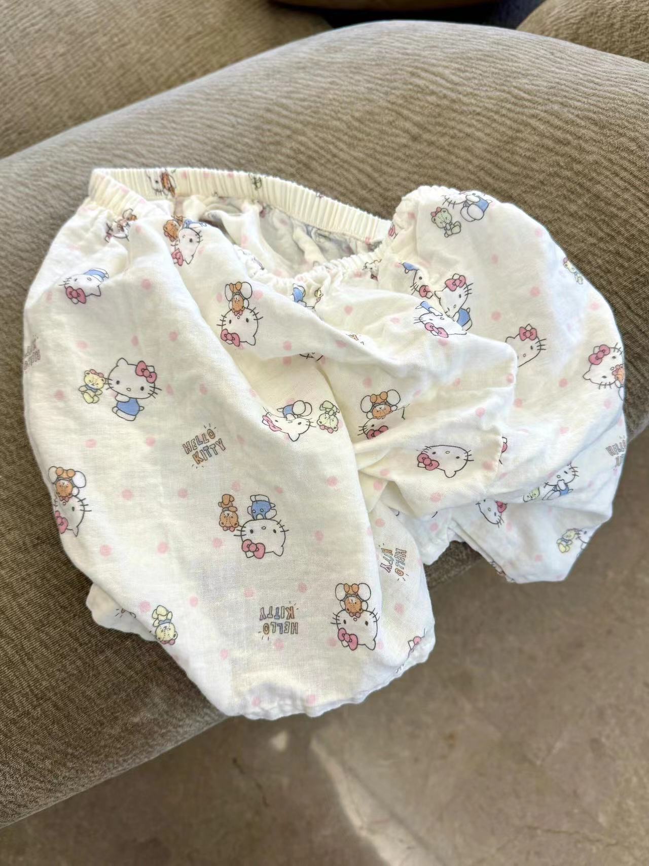 Polka dot kitty double layer gauze shorts, Puff puppy double gauze shorts, Pink cat double layer gauze shorts,...