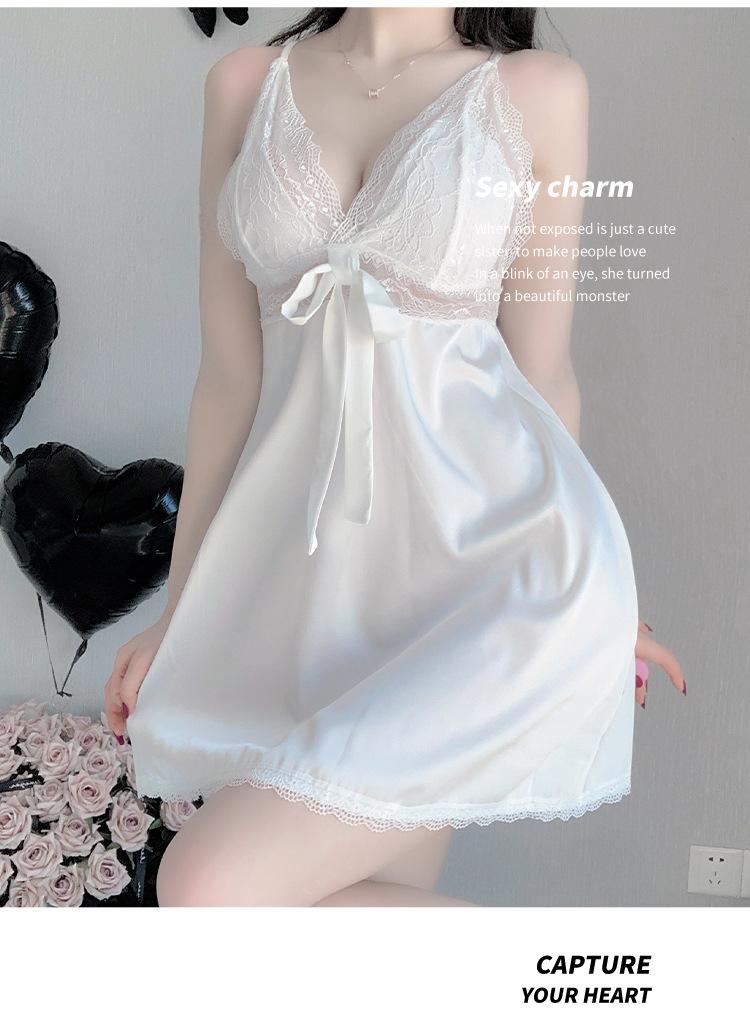 Xiyun Lingerie Sexy Pijama Sexy Francesa para Mulheres Verão Renda Suspensórios Seda Gelo Desejo Puro Camisola Saia Longa Conjunto Feminino