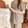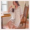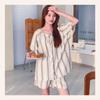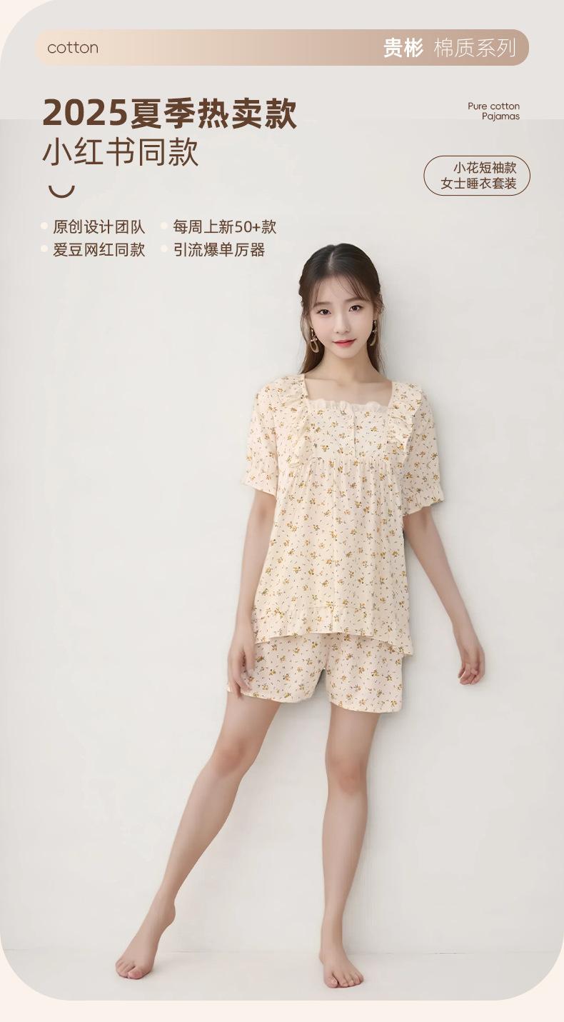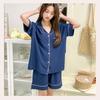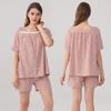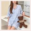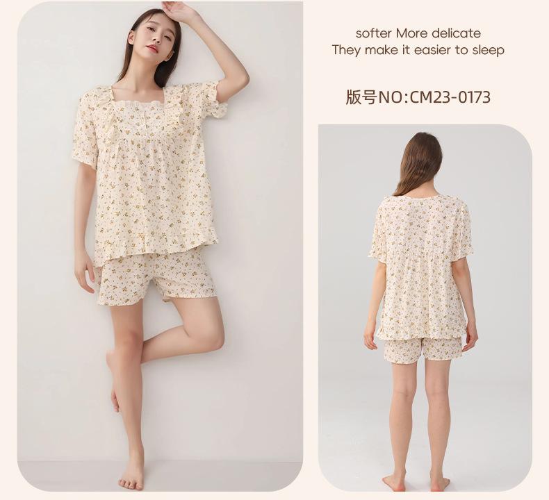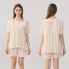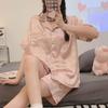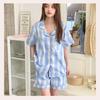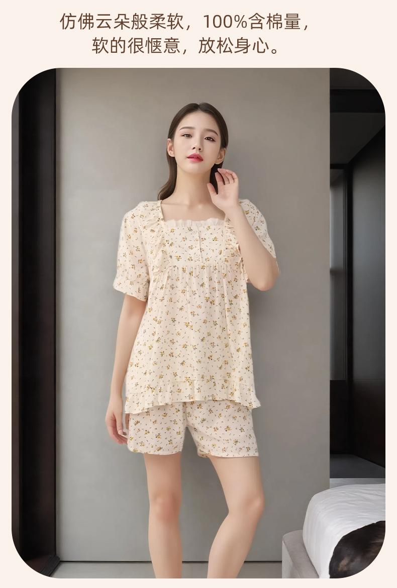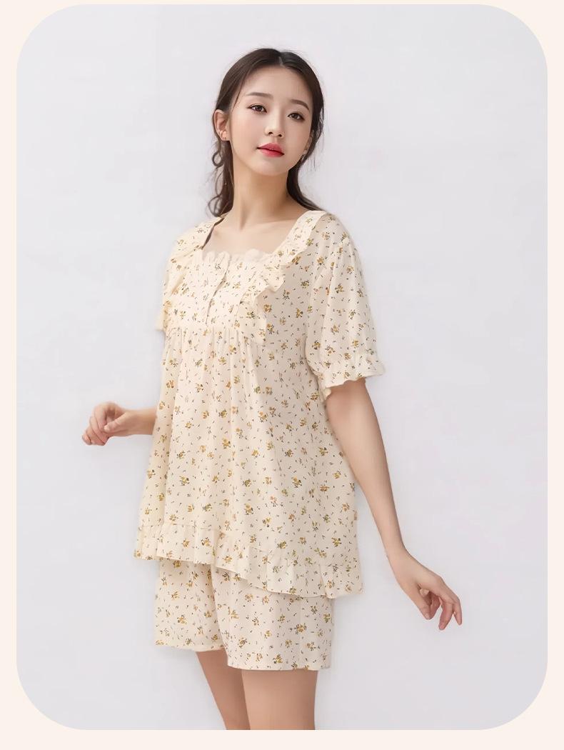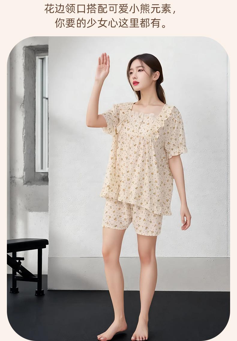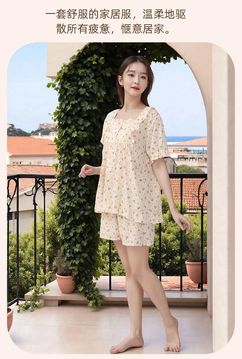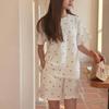 Pijama de Estilo Coreano Feminina Verão Fina Manga Curta Shorts Conjunto Doce Floral Estilo Princesa Roupa de Exterior Respirável Roupa de Casa