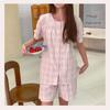Cm2402080202 Light pink plaid (cardigan short-sleeved shorts