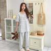 Cm2402080102 Blue plaid (cardigan short-sleeved shorts)