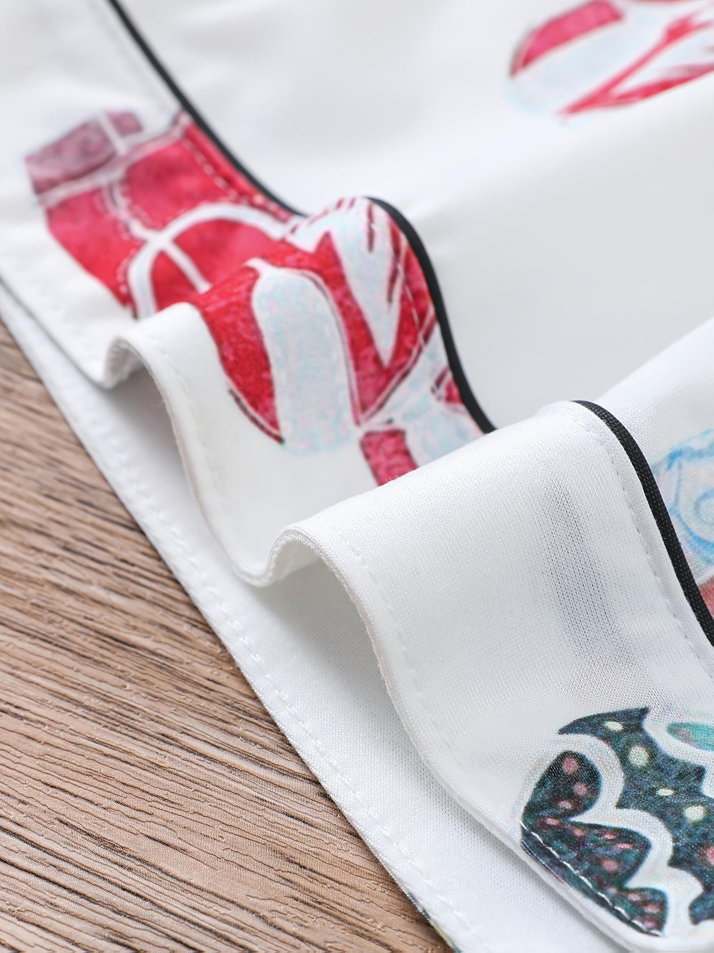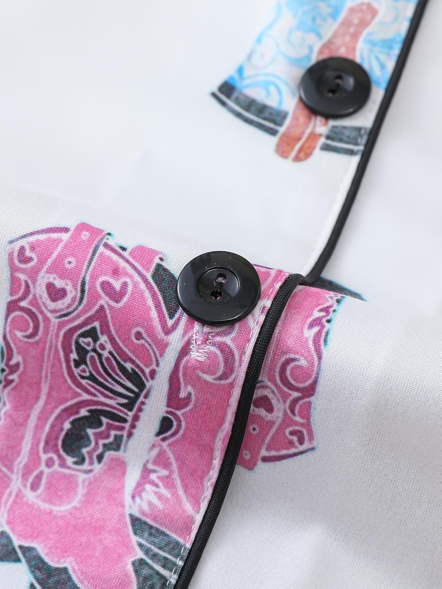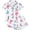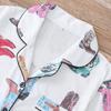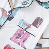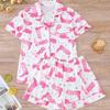 Pijama Popular Feminina para Exportação Transfronteiriça para o Ano Todo Botas Estampadas Lapela Manga Curta Shorts Terno Conjunto de Pijama