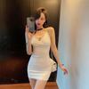 Vestido Sexy Puro Desejo Decote V Profundo Renda Halterneck Sexy Recorte na Cintura Plissado Justo Saia Quadril