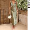 Vestido Longo de Verão Transfronteiriço 2025 Novo Europeu e Americano Sexy Transparente Slim de Renda com Alças para Mulheres