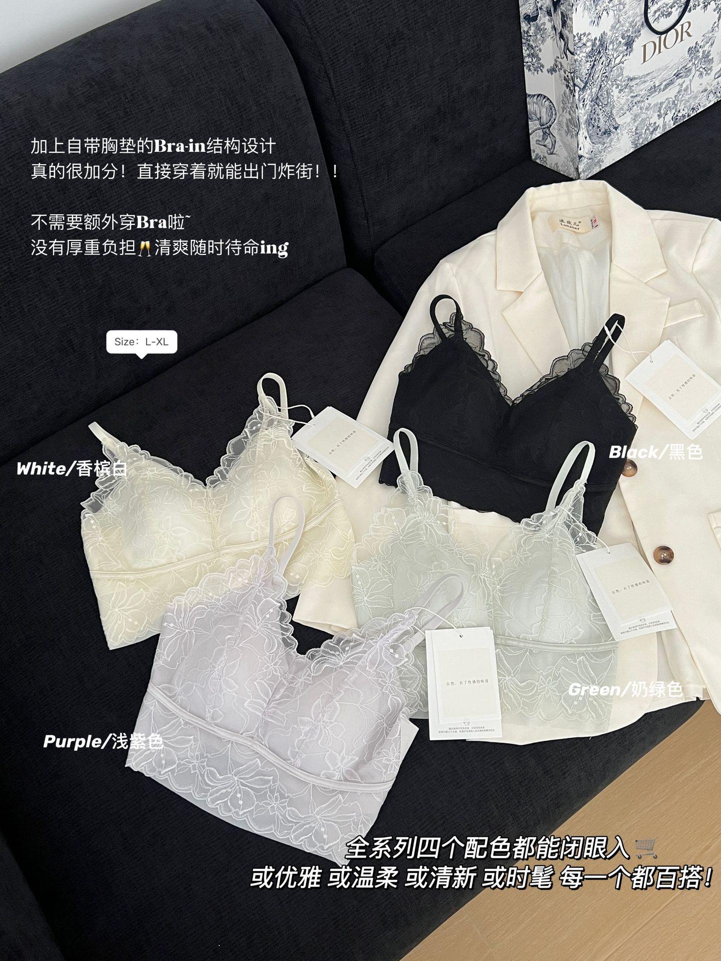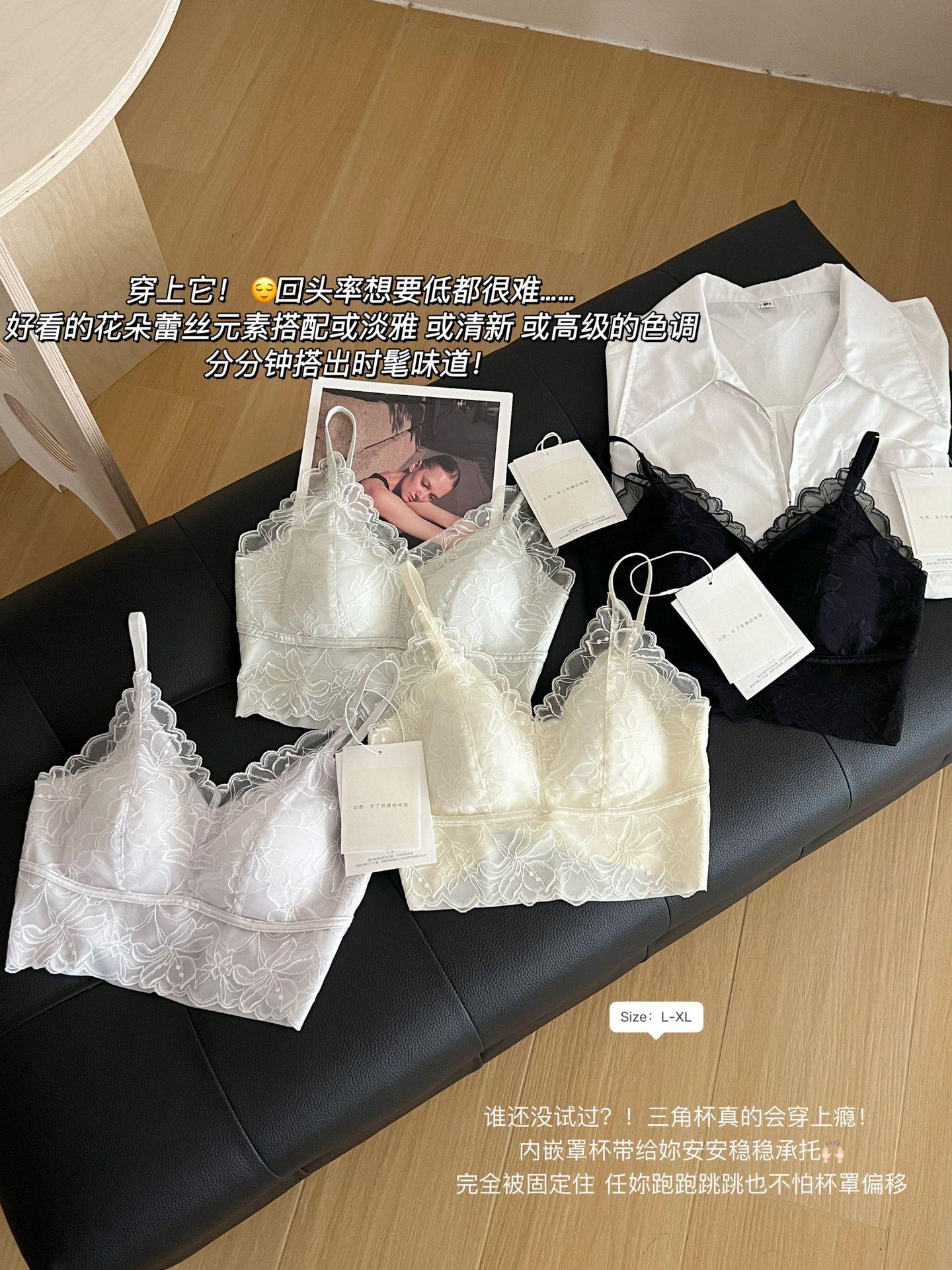 Sutiã Triângulo Francês Fino Confortável Respirável Lindo Costas Renda Alça Sutiã Interno