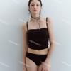 Verão Novo Falso Duas Peças Design de Botões Versátil Xadrez de Emenda Macacão Confortável de Alcinha com Bojo