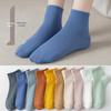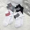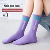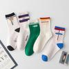 Meias Bordadas de Desenho Animado para Mulheres, Listras Contrastantes, Meias Elásticas Estilo Preppy Trendy Ins, Algodão Absorvente de Suor Respirável Meias Esportivas
