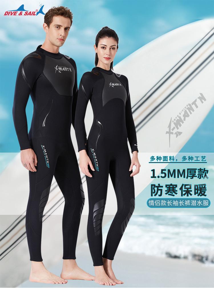 Novo Fato de Mergulho para Casal Masculino 1,5mm Macacão Térmico à Prova de Frio Manga Longa Snorkeling Surfe Protetor Solar Medusa Fato de Banho Feminino