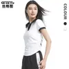 Camiseta Esportiva de Secagem Rápida com Gola Lapela em Malha de Seda para Mulheres, Roupa de Yoga de Alto Padrão para o Verão, Top para Treinamento, Corrida e Fitness