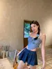 Novo Top Tubo Halterneck Xadrez Americano Feminino Sexy Maiô Sem Costas Dividido Três Peças Maiô Biquíni Feminino
