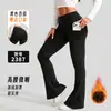 Calças de ioga com forro de lã europeu e americano outono e inverno, calças de ioga com chifres espessos, calças de tubarão de cintura alta para mulheres, calças esportivas de fitness