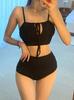 Novo Maiô Coreano Estilo Ins Puro Lustro Sexy Renda Fenda Cintura Alta Cobrindo a Barriga Biquíni Maiô Beira-Mar para Mulheres