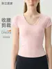 Top de Yoga Snu Slim para Mulheres, Cinch de Cintura, Camiseta de Ombro Reto, Roupa de Yoga Esportiva Justa de Manga Curta, Roupa de Treino de Pilates